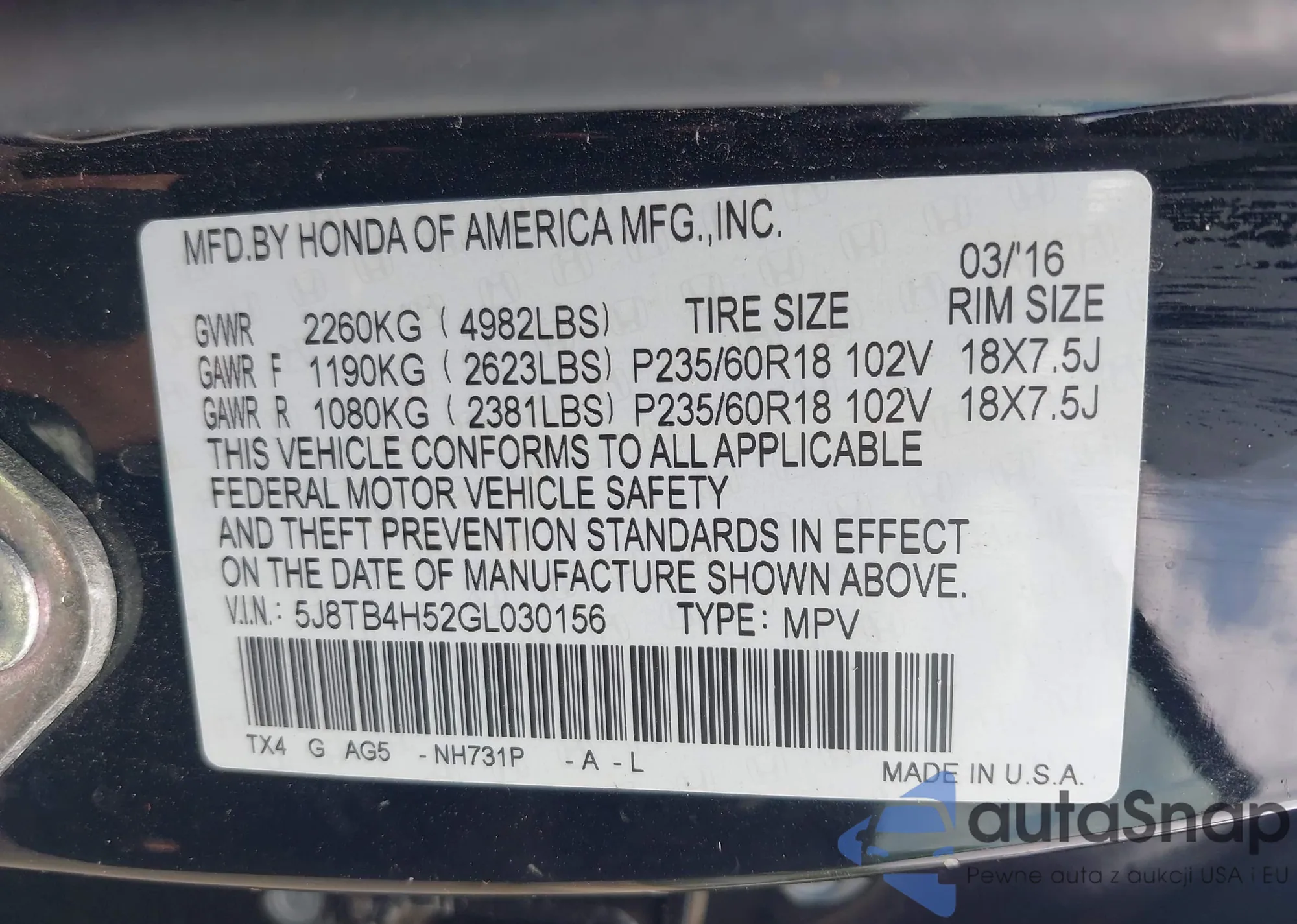 VIN: 5J8TB4H52GL030156