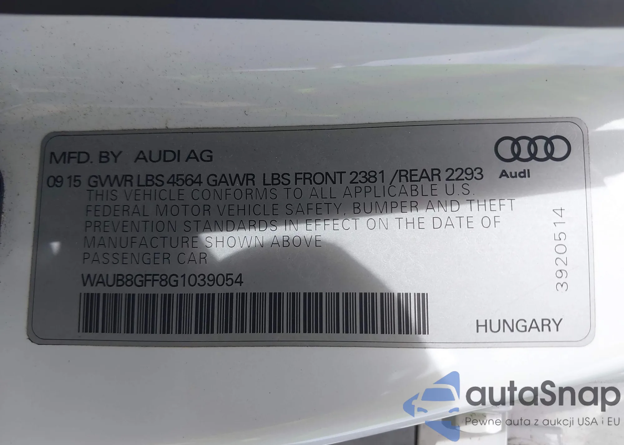 VIN: WAUB8GFF8G1039054