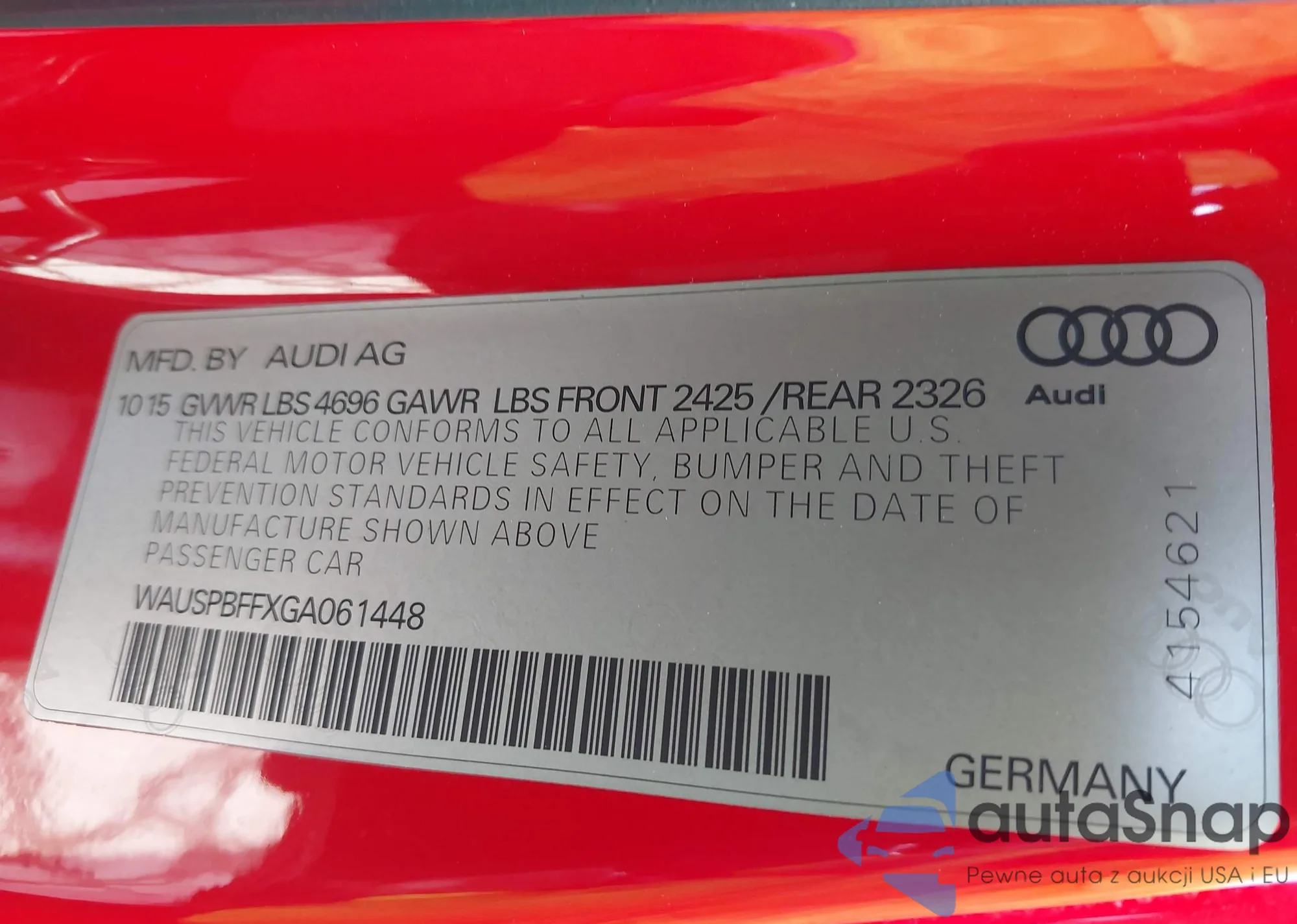 VIN: WAUSPBFFXGA061448