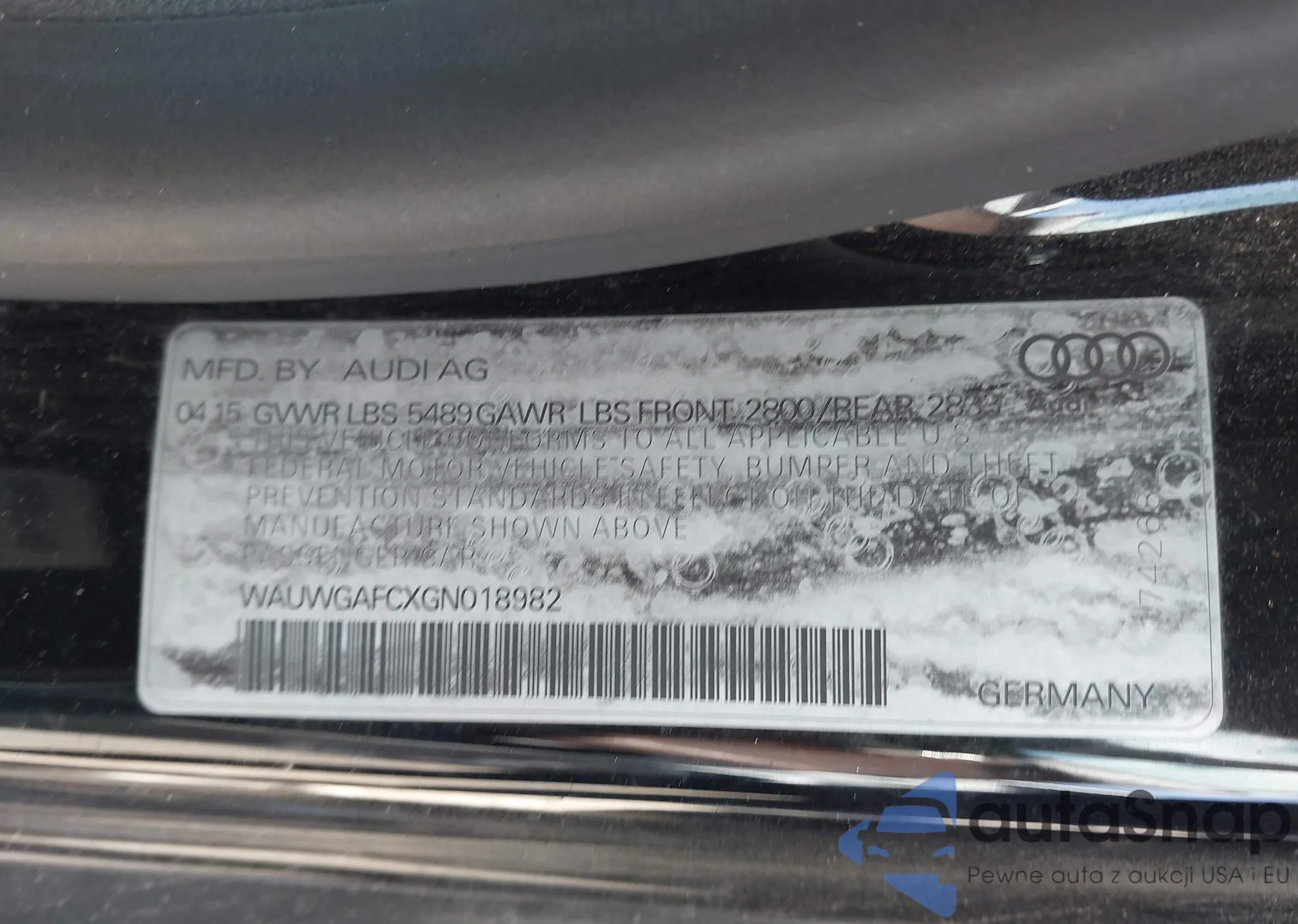 • VIN: WAUWGAFCXGN018982