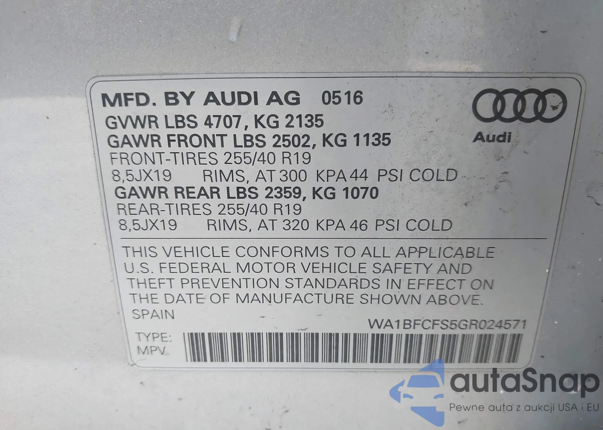 VIN: WA1BFCFS5GR024571