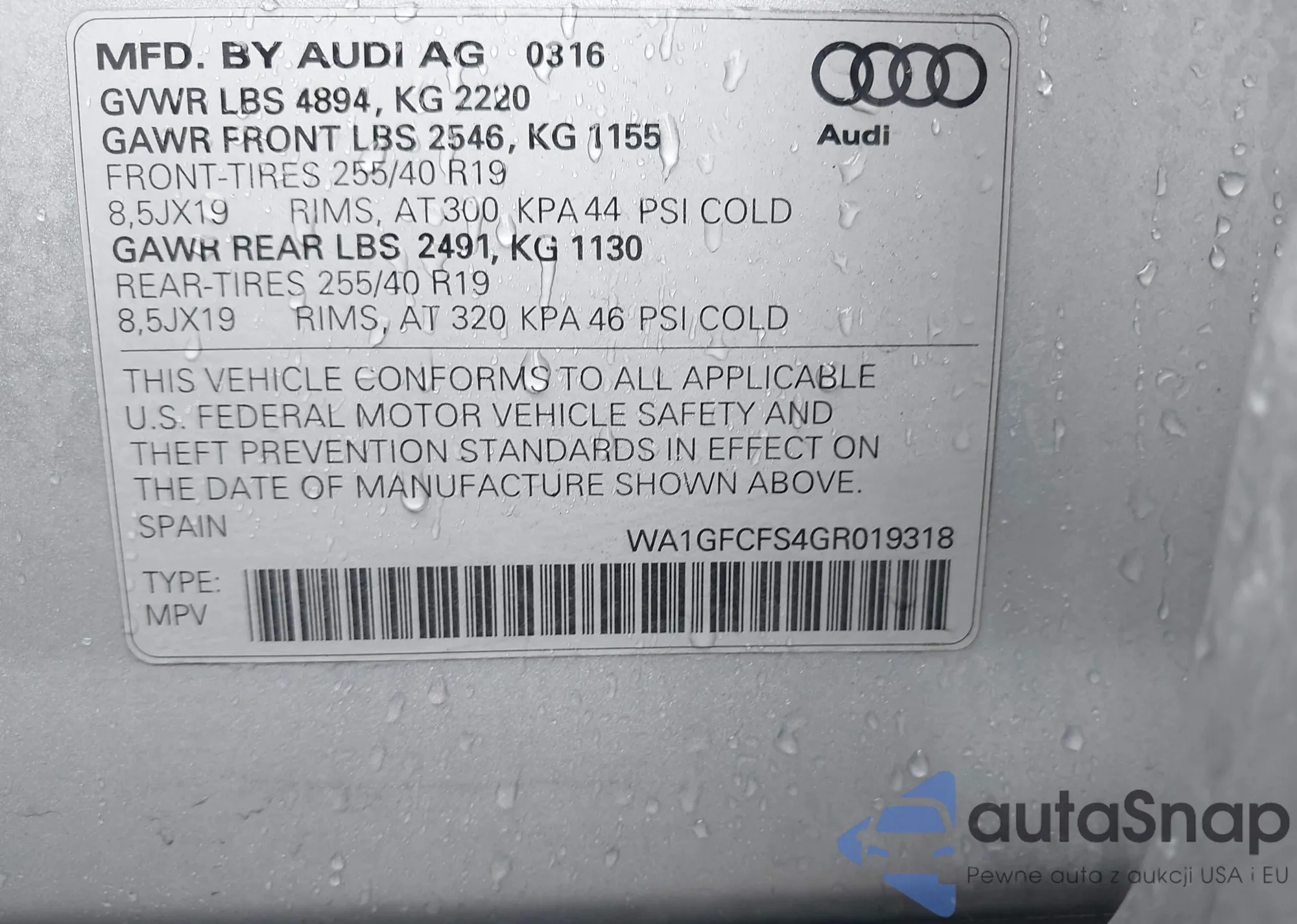 VIN: WA1GFCFS4GR019318