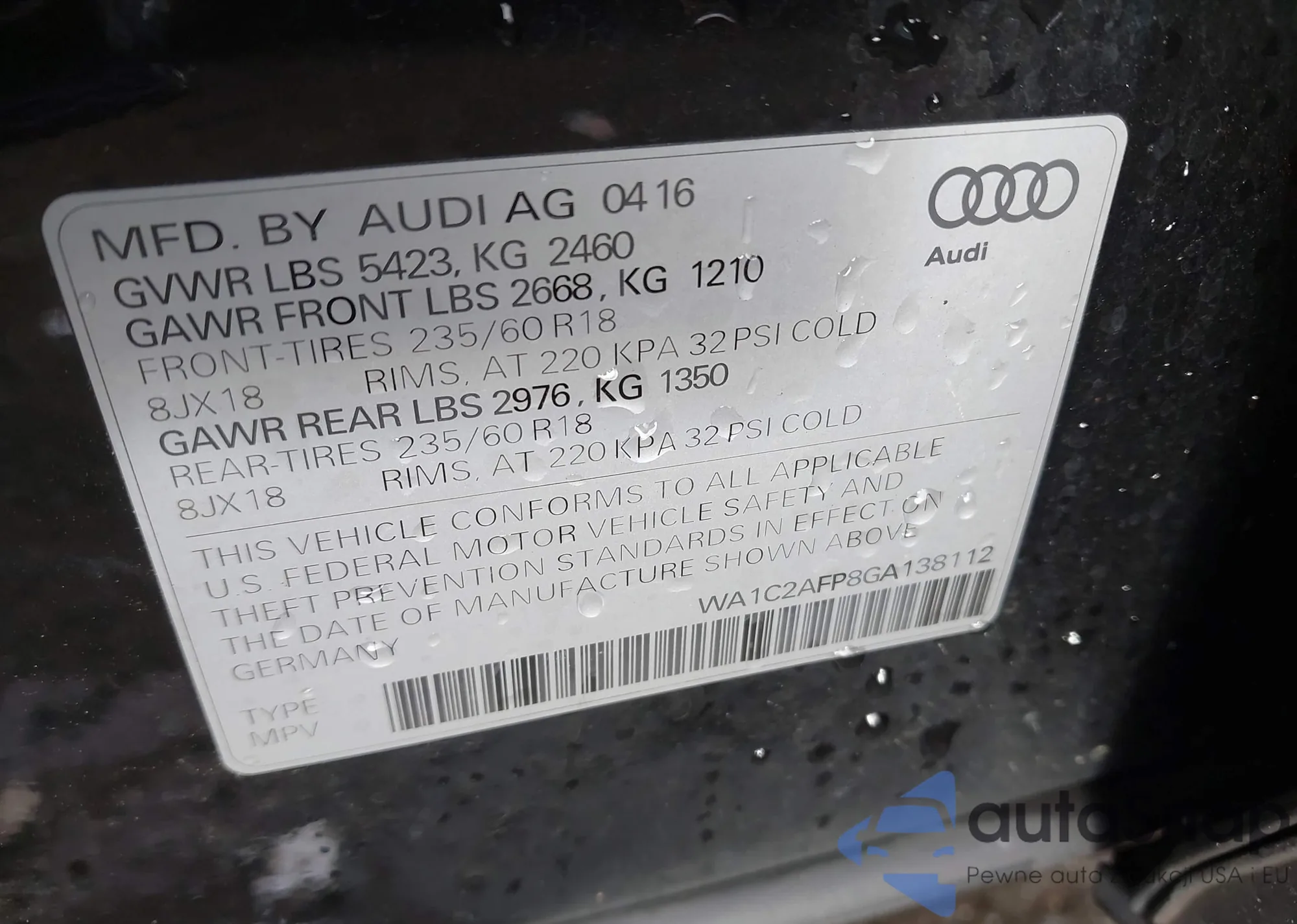 • VIN: WA1C2AFP8GA138112
