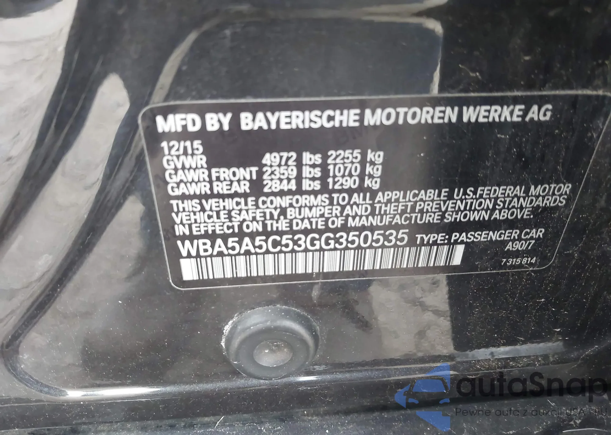 VIN: WBA5A5C53GG350535