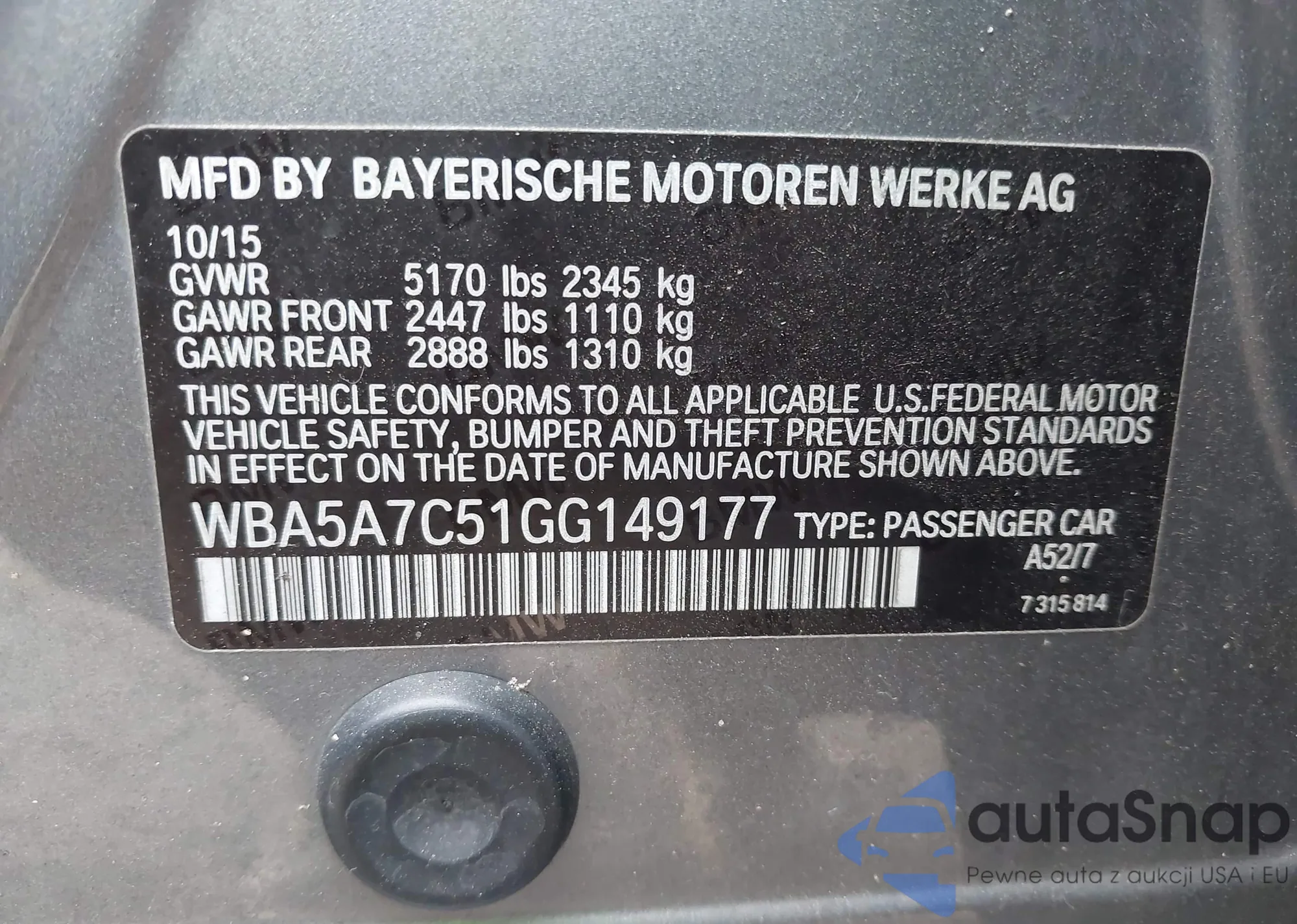 VIN: WBA5A7C51GG149177