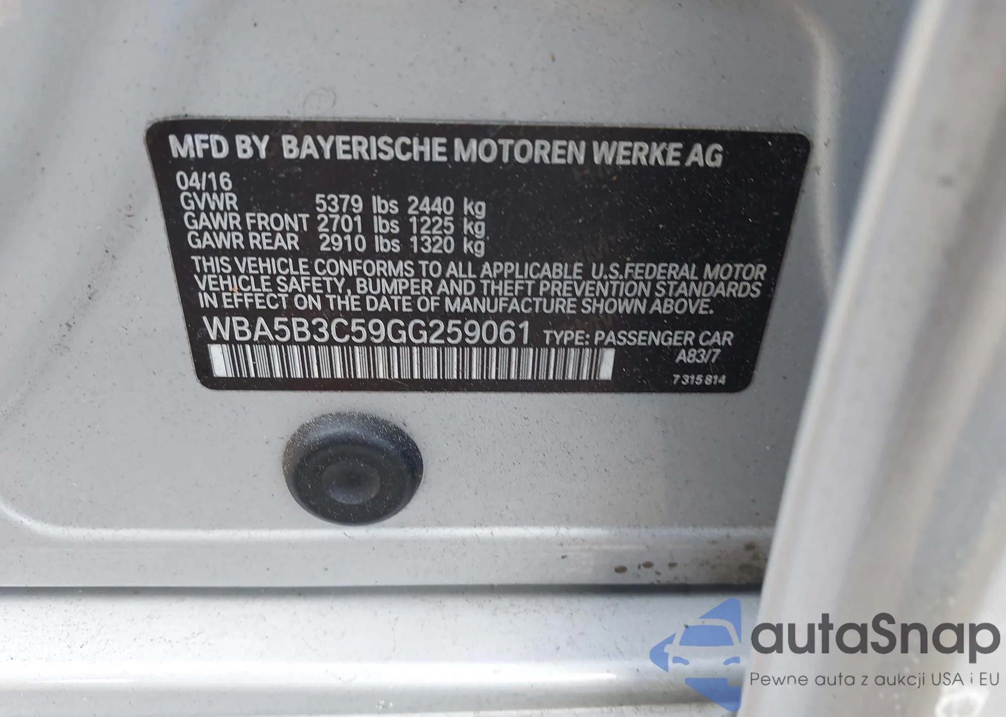 VIN: WBA5B3C59GG259061