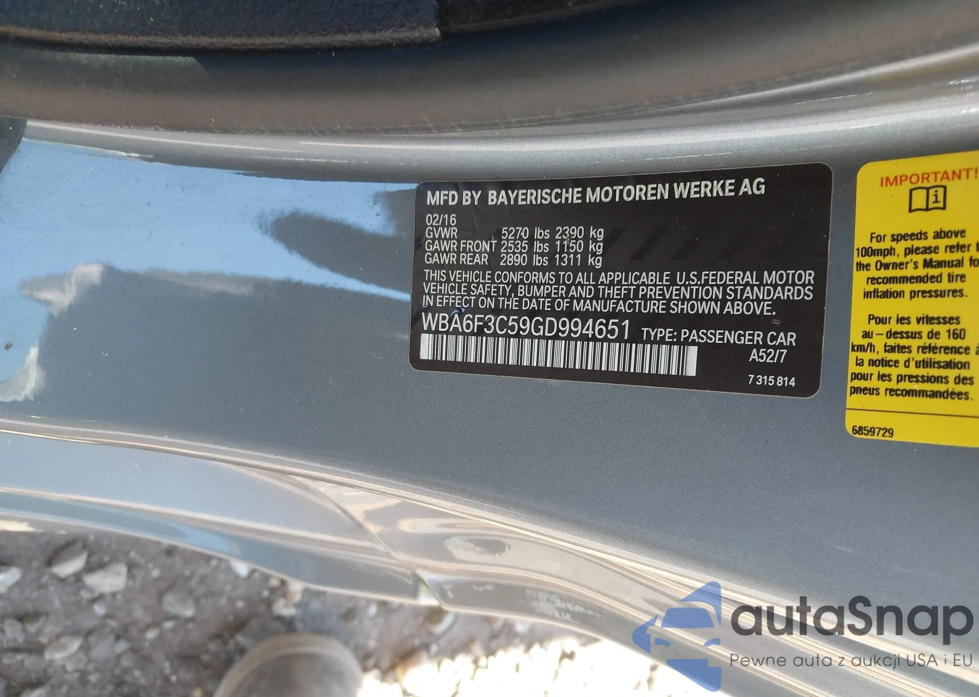 • VIN: WBA6F3C59GD994651