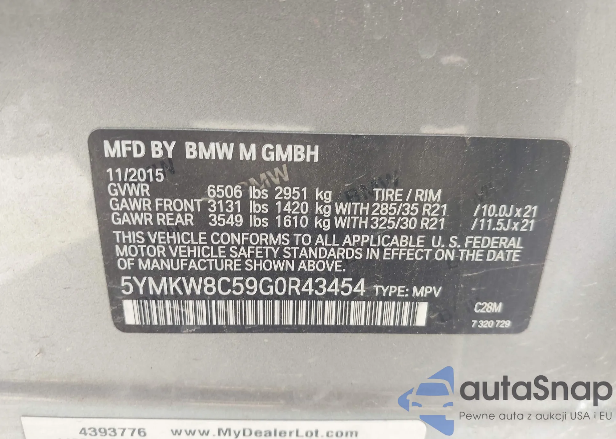 VIN: 5YMKW8C59G0R43454