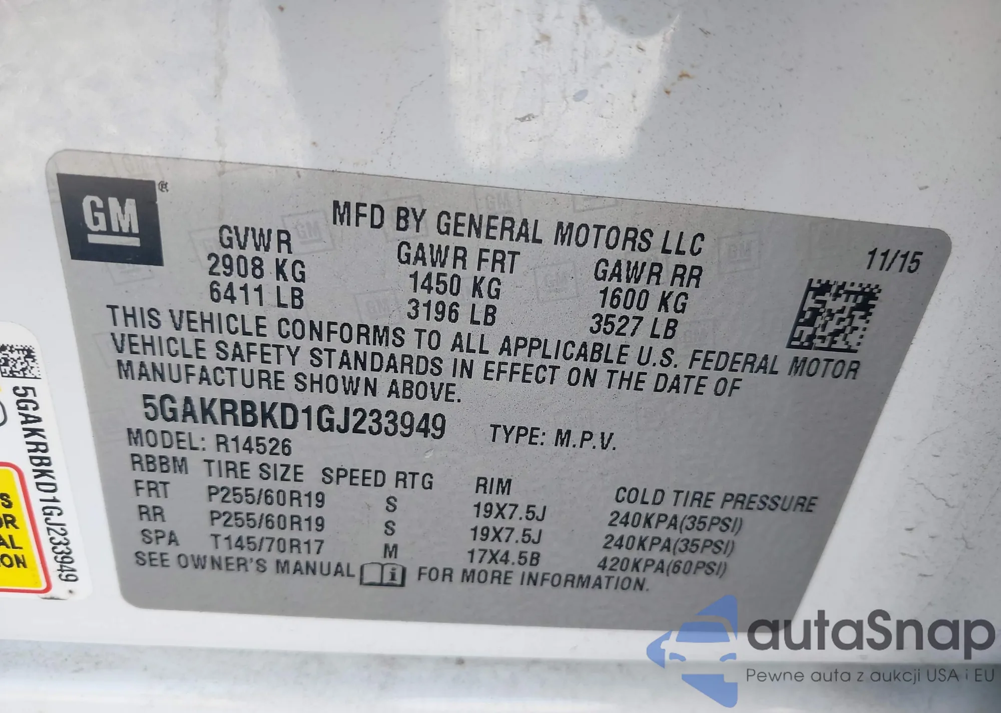 VIN: 5GAKRBKD1GJ233949