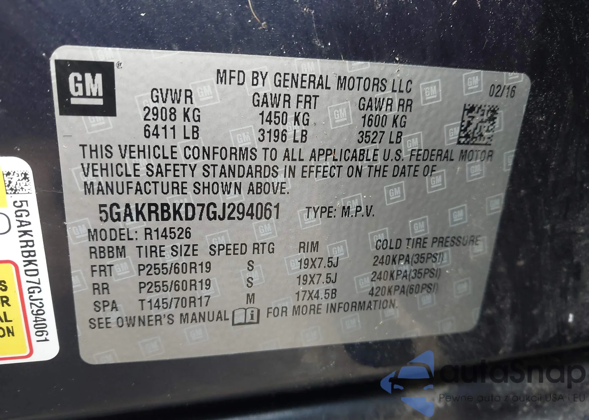 Автомобиль Buick Enclave 2016 (VIN 5GAKRBKD7GJ294061) ранее не участвовал в торгах. Документы чистые, пробег соответствует или ниже среднего по рынку. Продаётся страховой компанией — рекомендуем покупку. Доставка в порт займет около 6–8 недель.