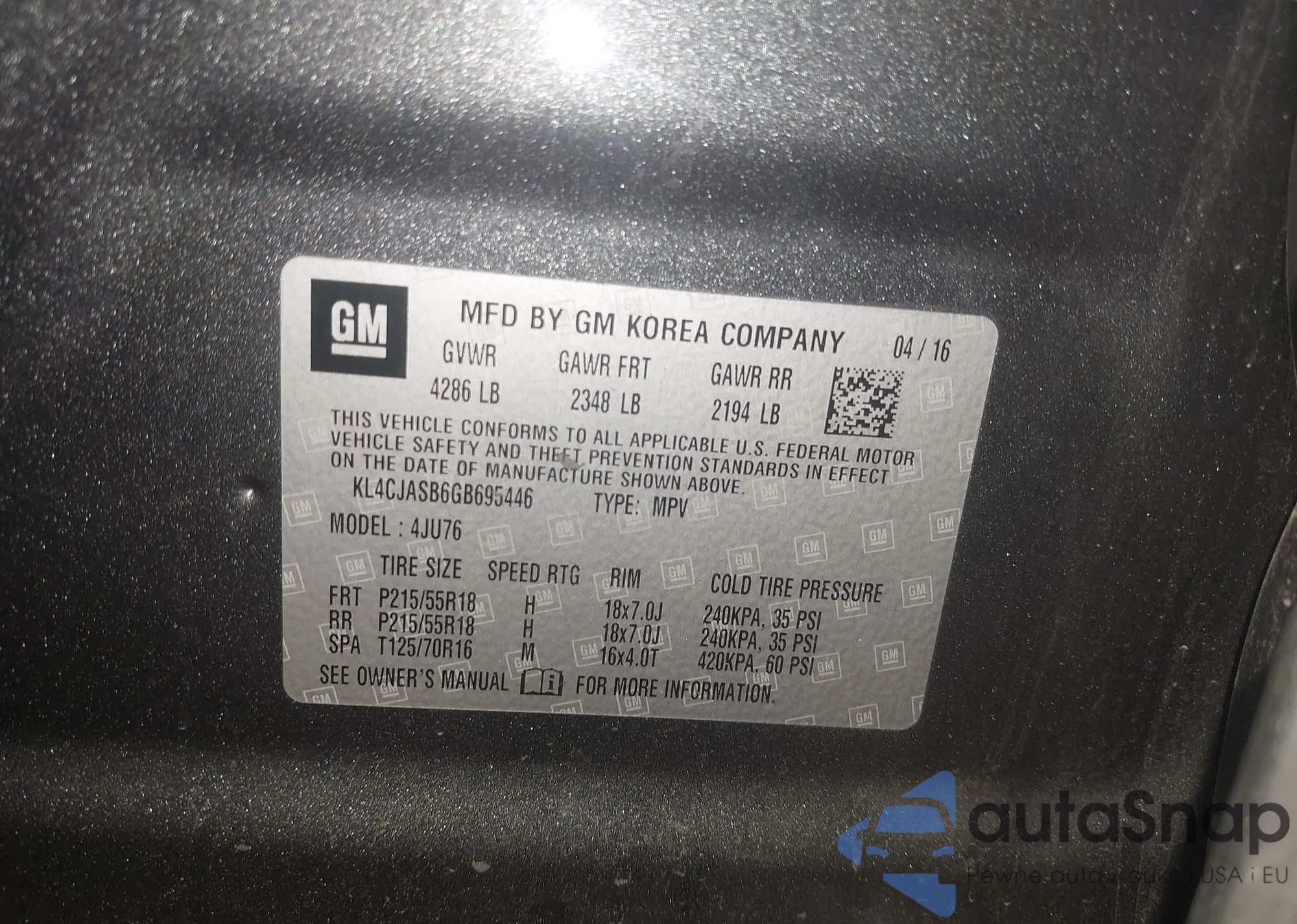 Автомобиль Buick Encore 2016 (VIN KL4CJASB6GB695446) ранее не участвовал в торгах. Документы чистые, пробег соответствует или ниже среднего по рынку. Продаётся страховой компанией — рекомендуем покупку. Доставка в порт займет около 6–8 недель.