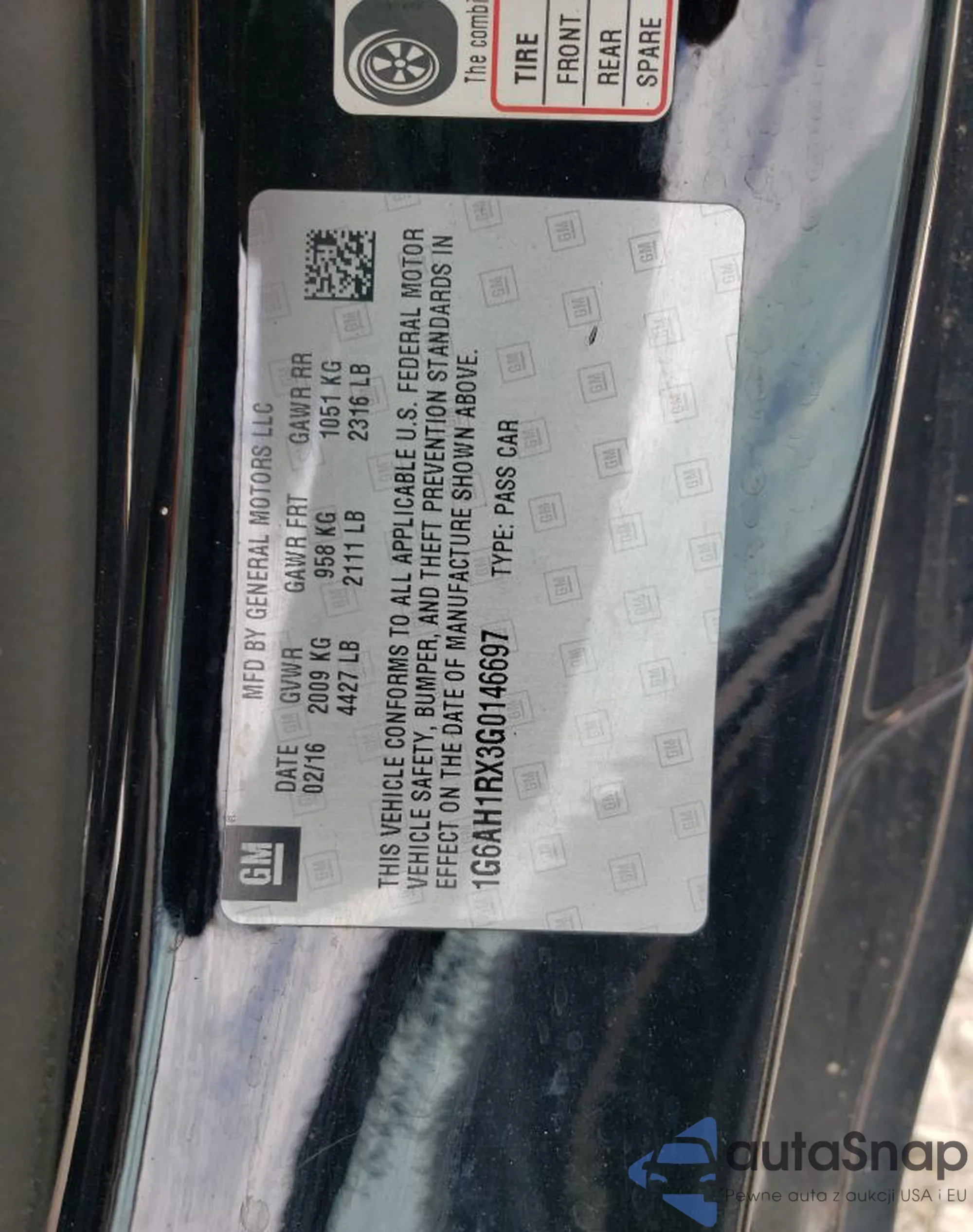 VIN: 1G6AH1RX3G0146697
