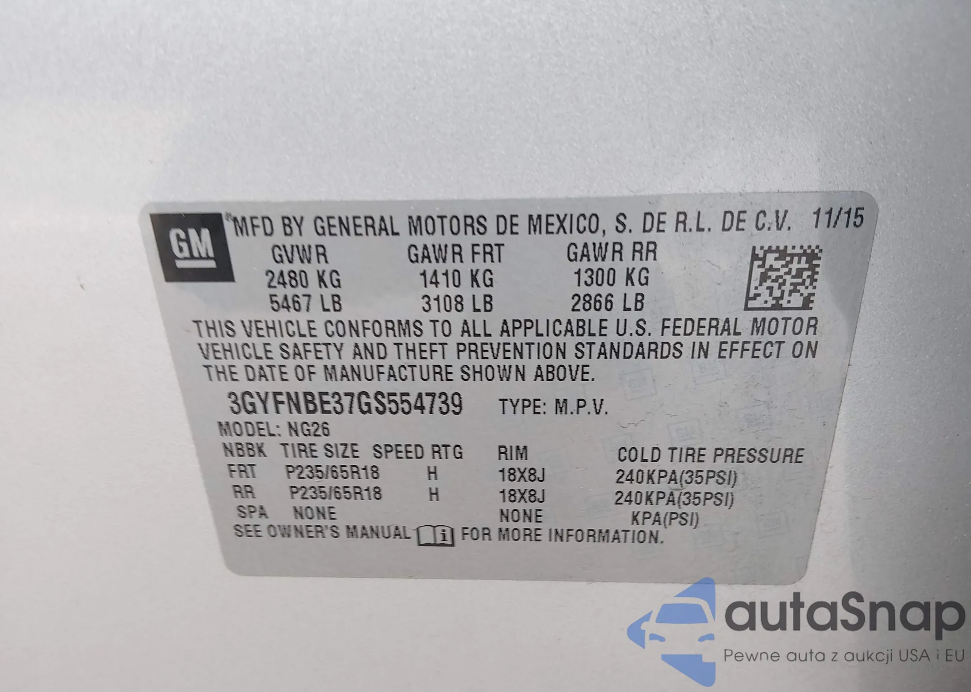 VIN: 3GYFNBE37GS554739