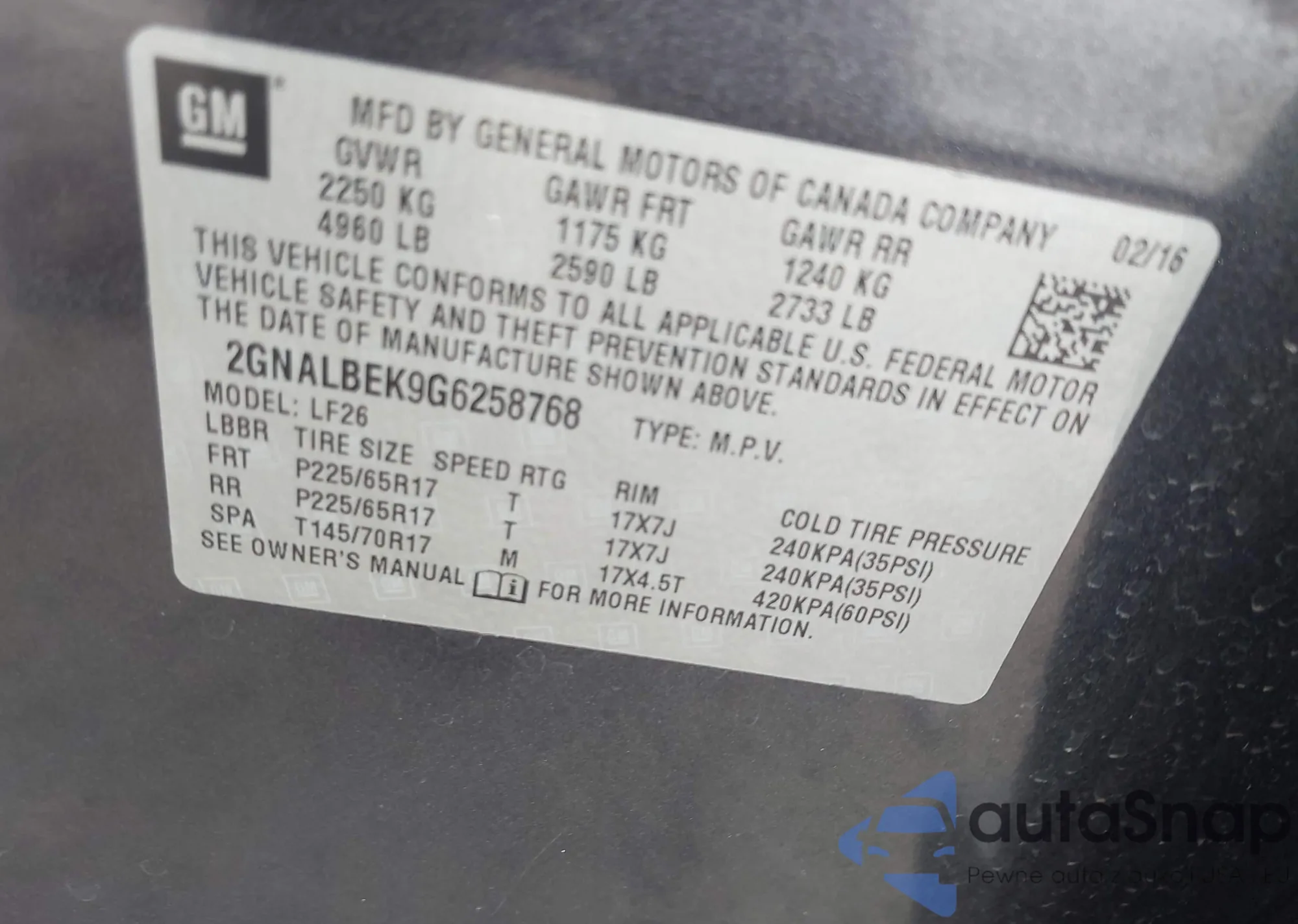 VIN: 2GNALBEK9G6258768