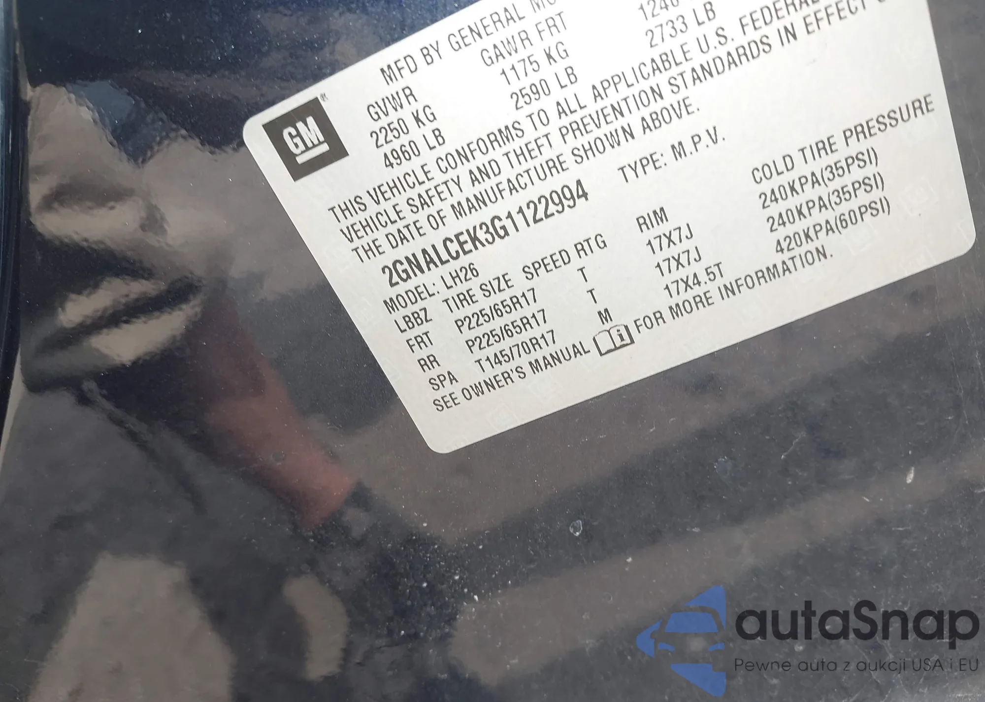 VIN: 2GNALCEK3G1122994