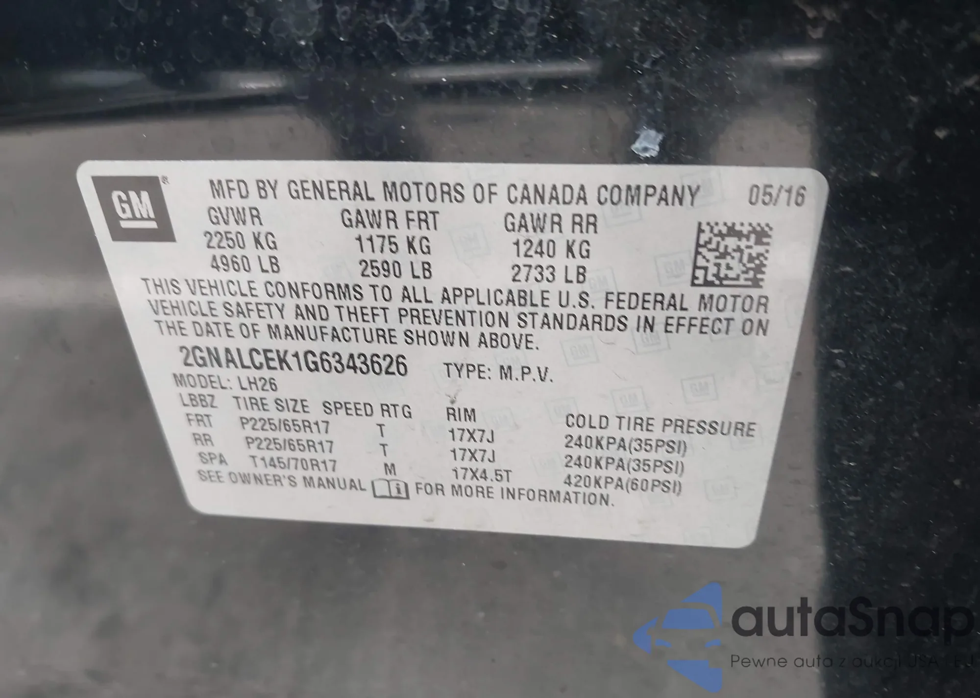 VIN: 2GNALCEK1G6343626