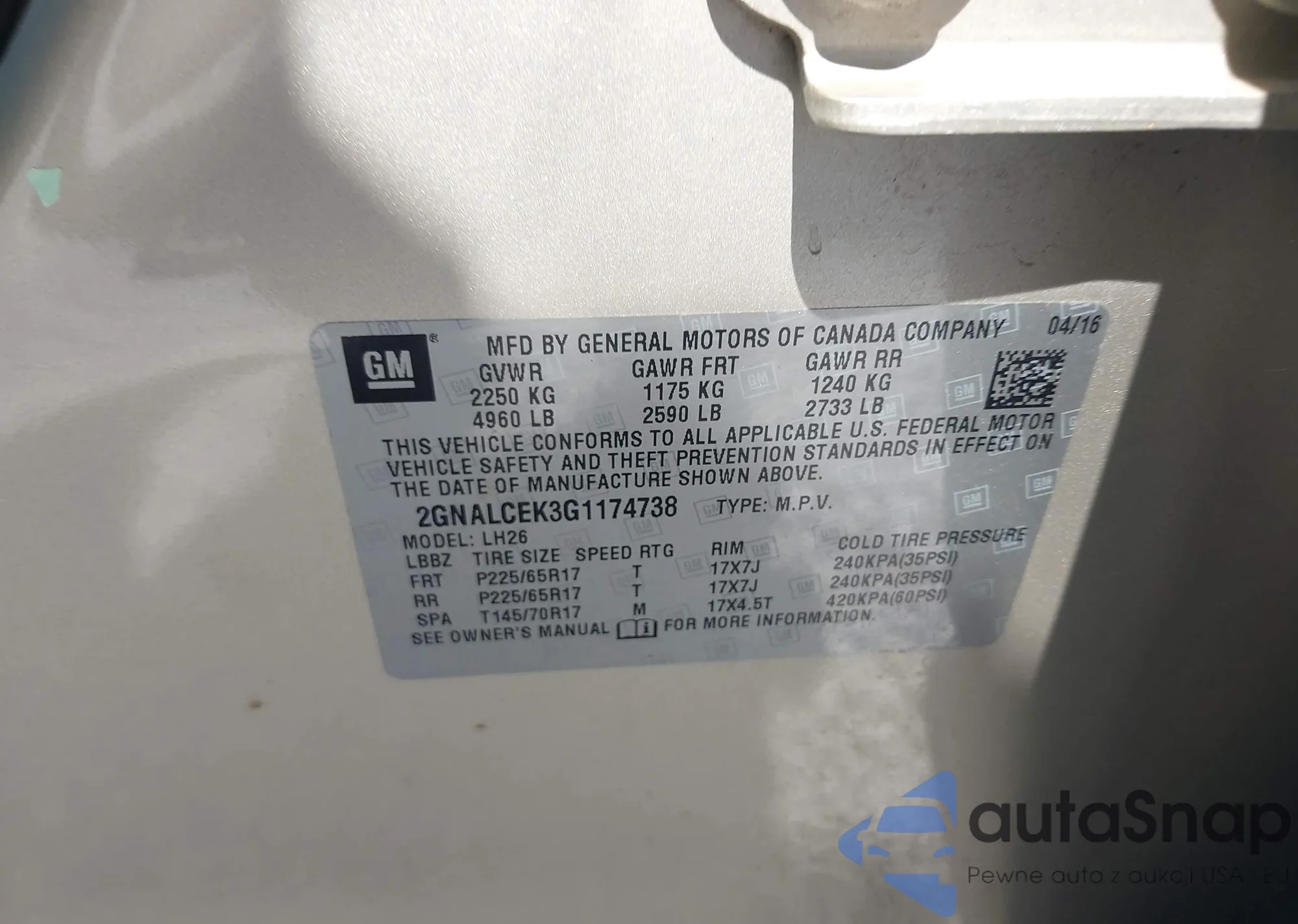 VIN: 2GNALCEK3G1174738