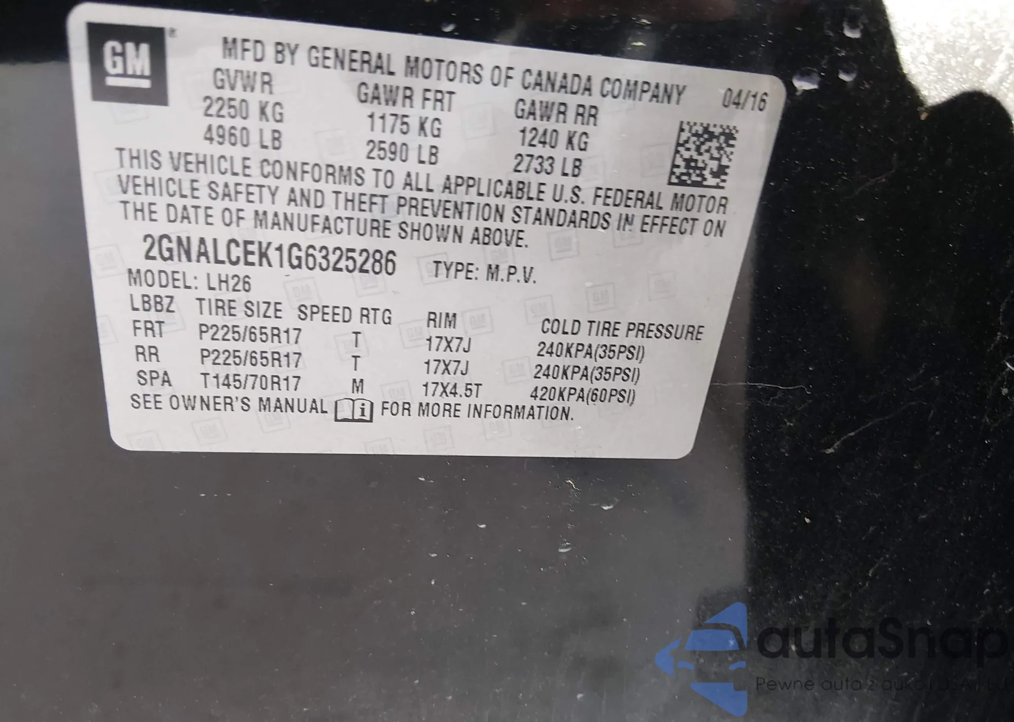 VIN: 2GNALCEK1G6325286