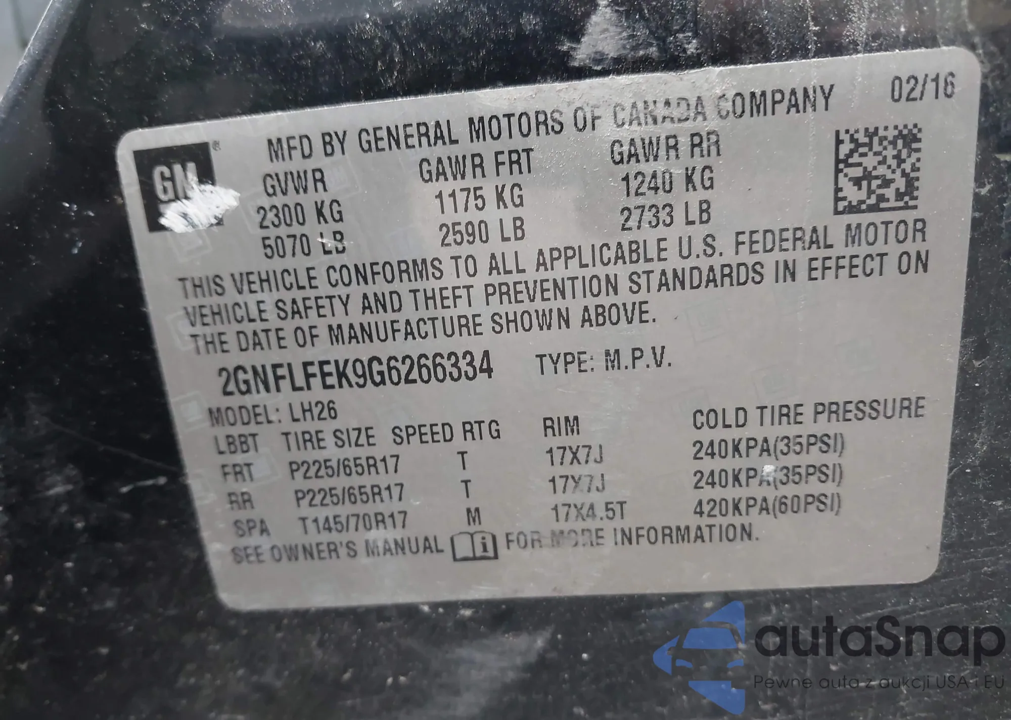 VIN: 2GNFLFEK9G6266334