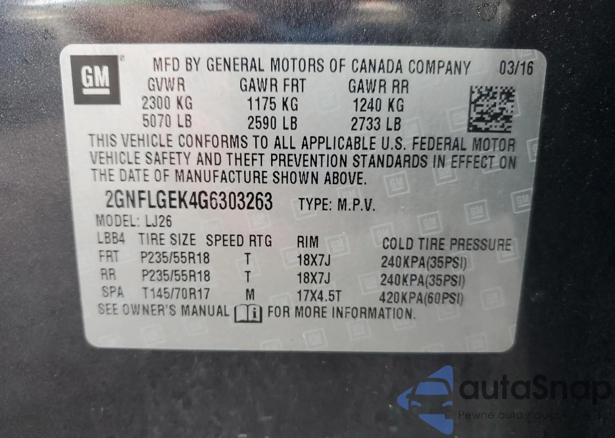 VIN: 2GNFLGEK4G6303263