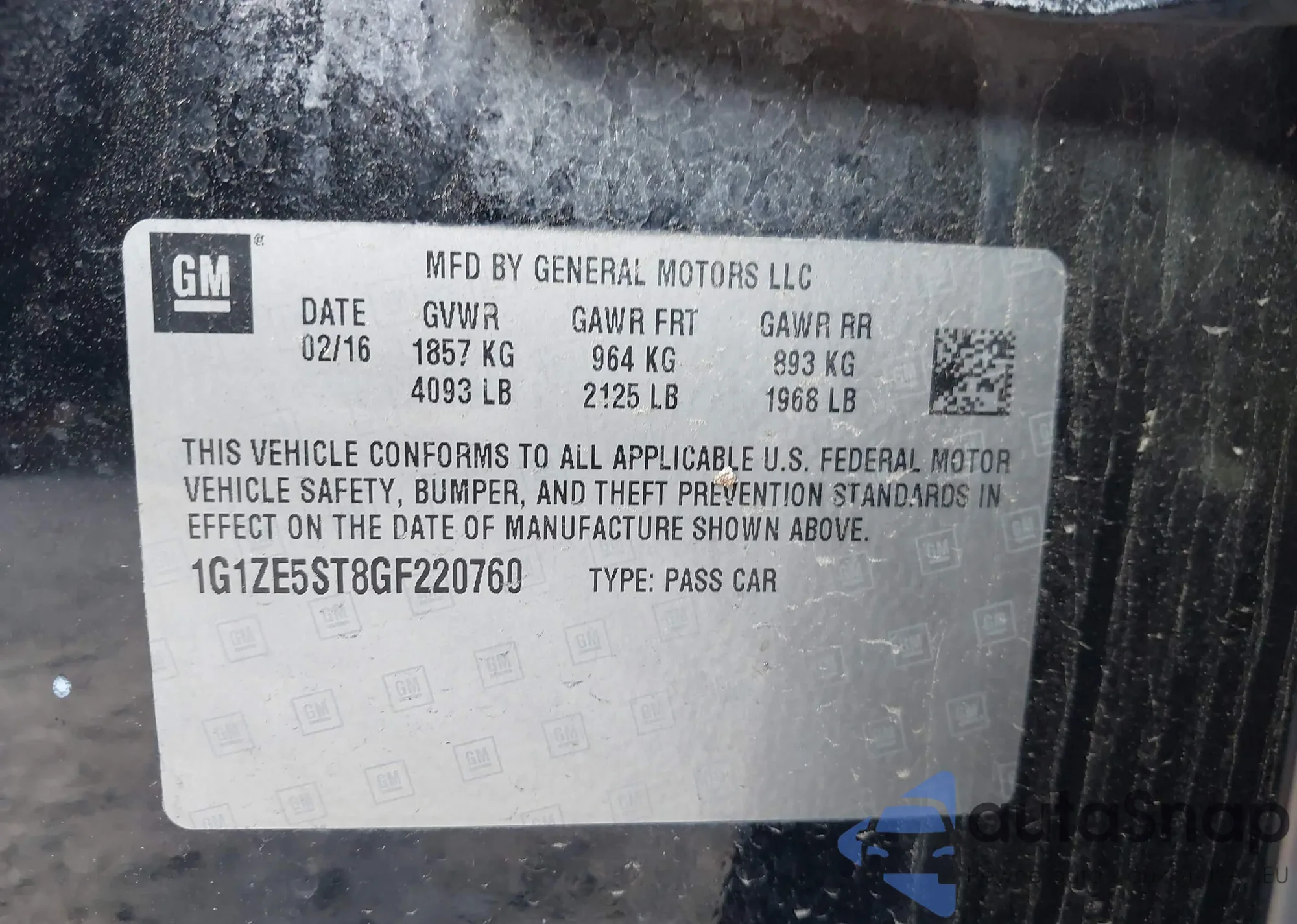 VIN: 1G1ZE5ST8GF220760