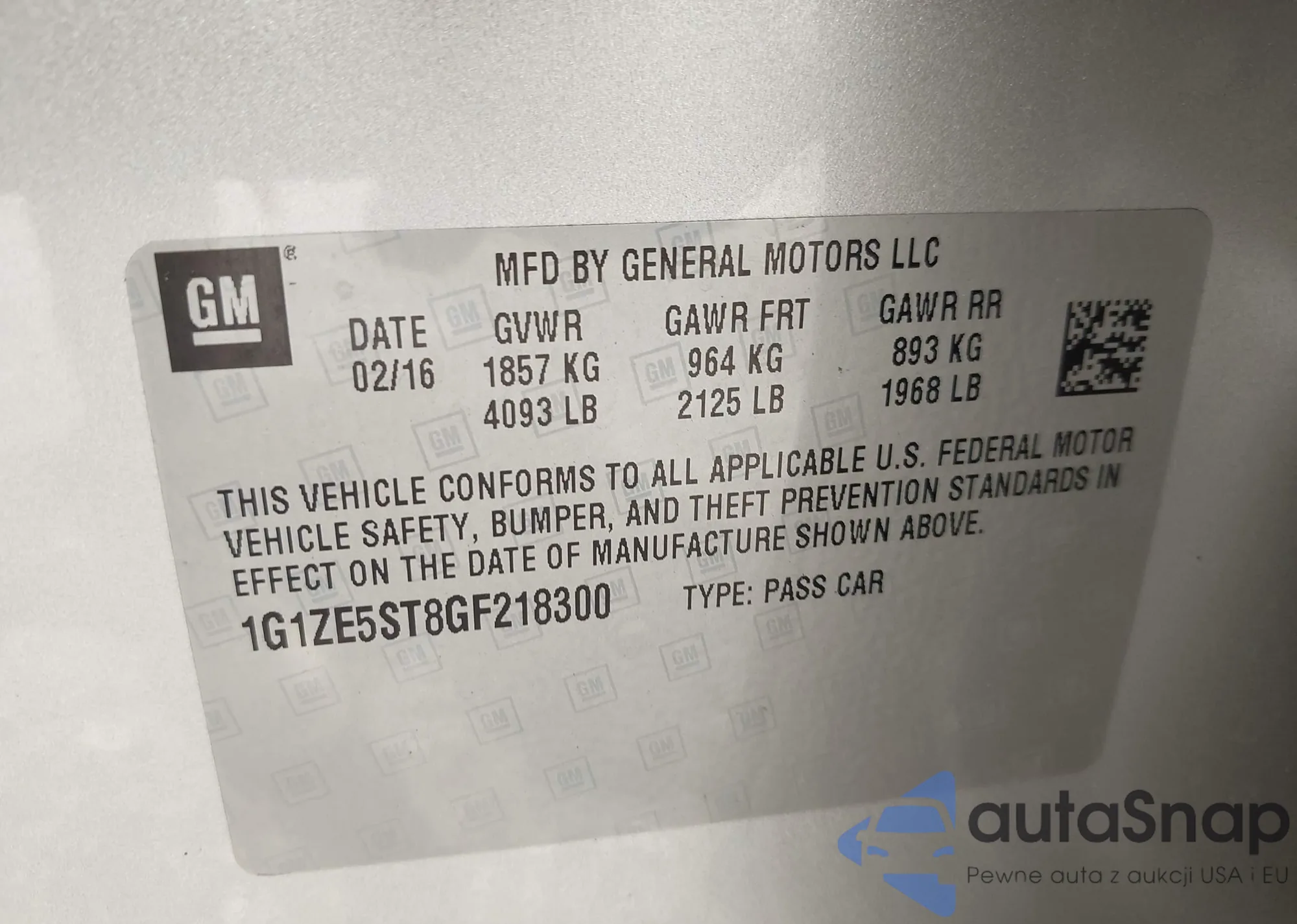 VIN: 1G1ZE5ST8GF218300
