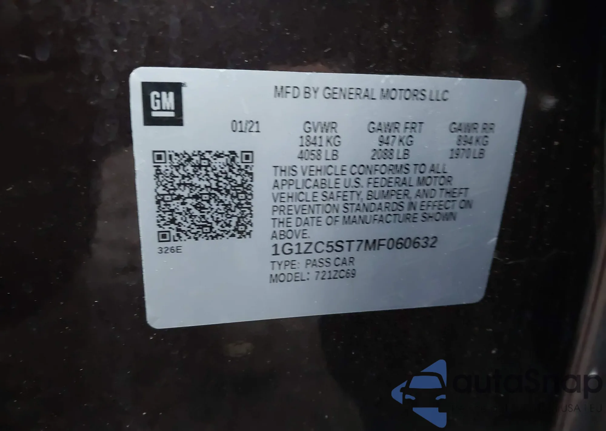 • VIN: 1G1ZB5ST7GF358296