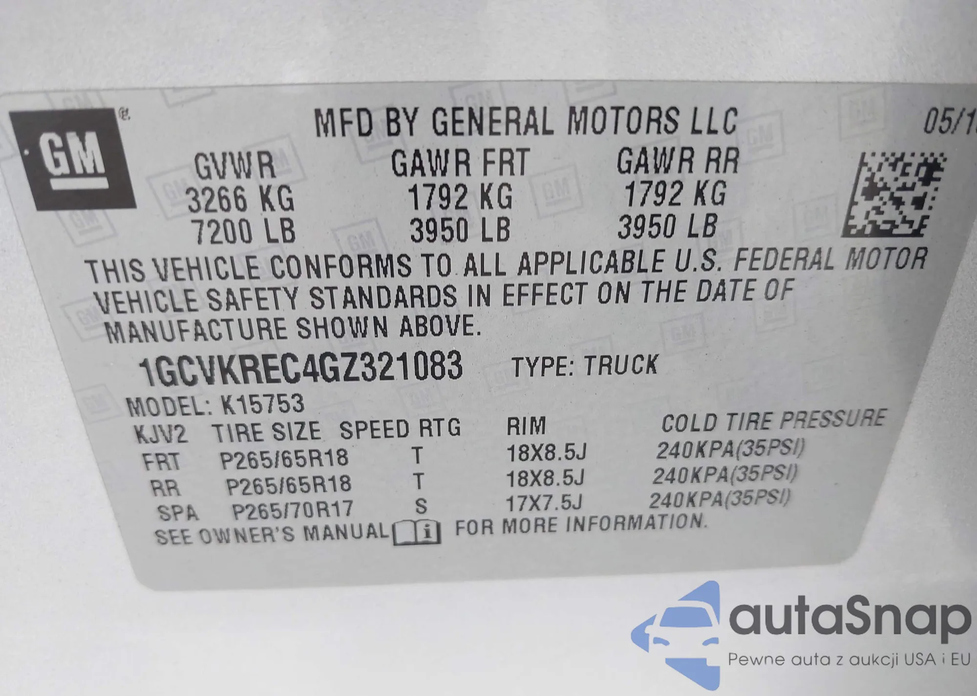 Автомобиль Chevrolet Silverado 2016 (VIN 1GCVKREC4GZ321083) ранее не участвовал в торгах. Документы чистые, пробег соответствует или ниже среднего по рынку. Продаётся страховой компанией — рекомендуем покупку. Доставка в порт займет около 6–8 недель.