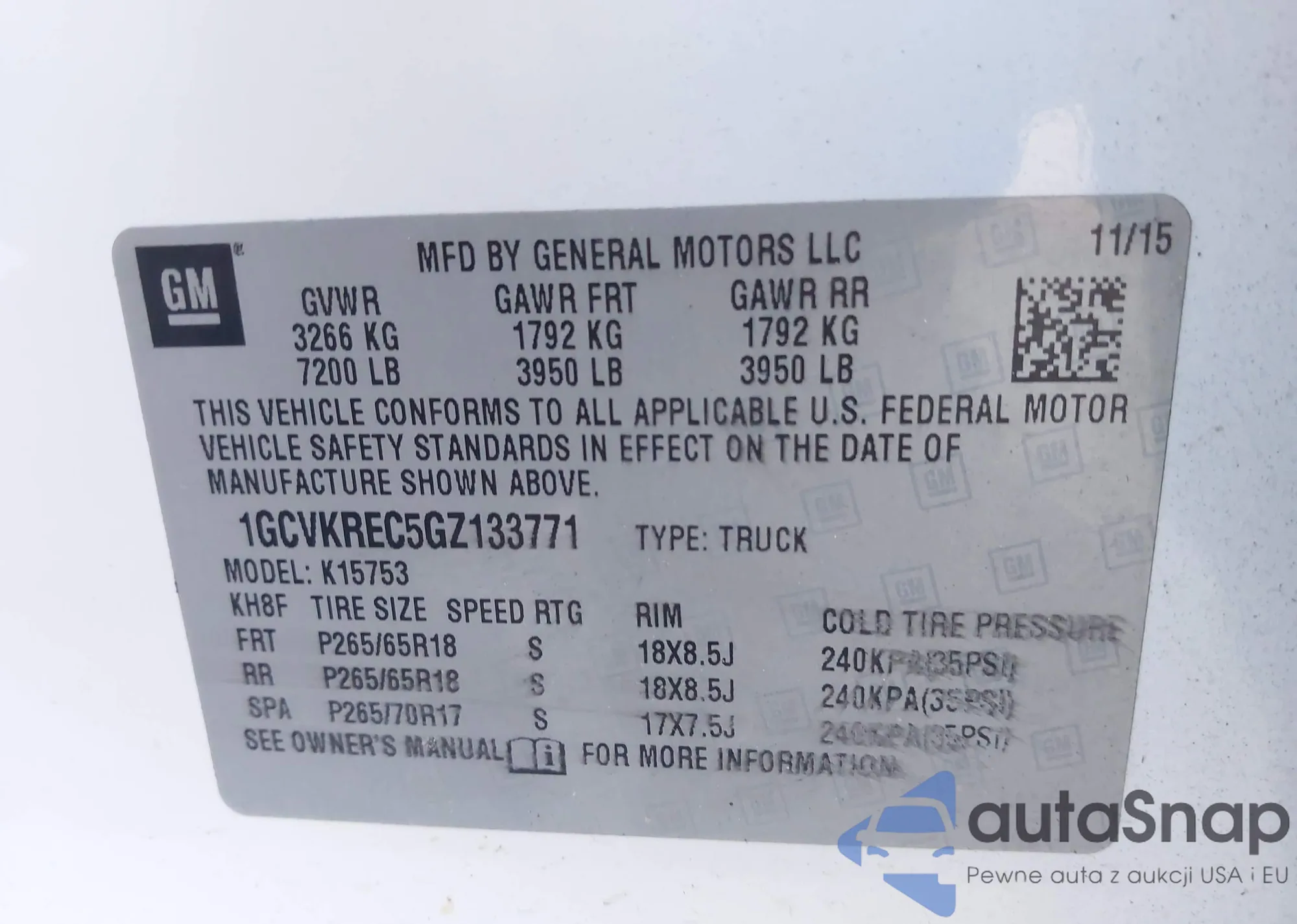 VIN: 1GCVKREC5GZ133771