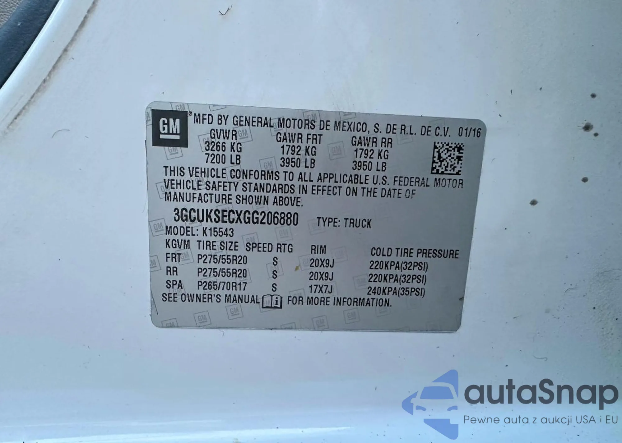 VIN: 3GCUKSECXGG206880