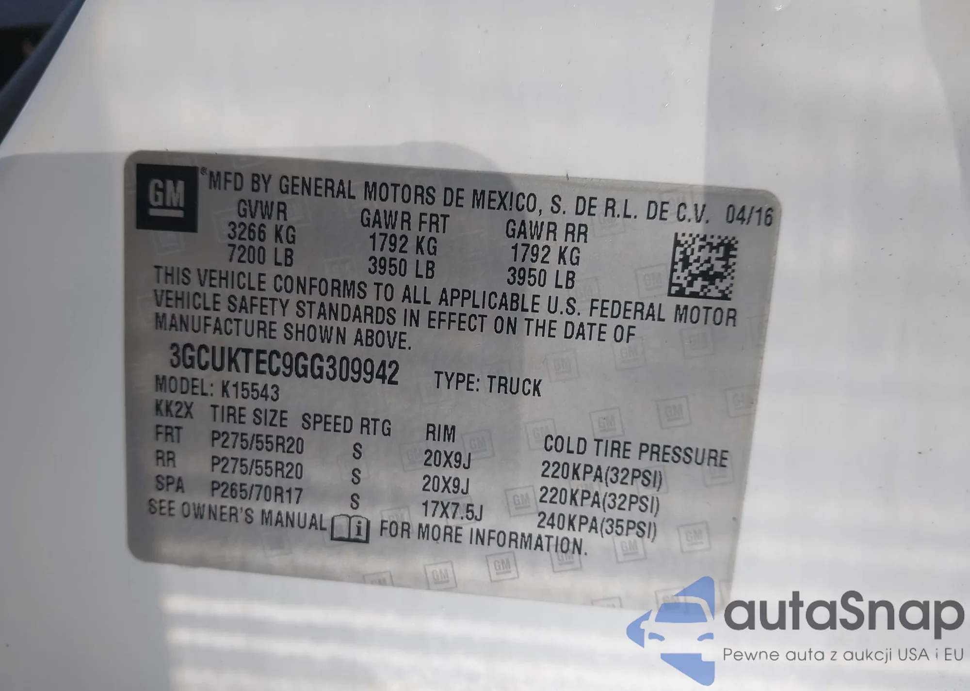 VIN: 3GCUKTEC9GG309942