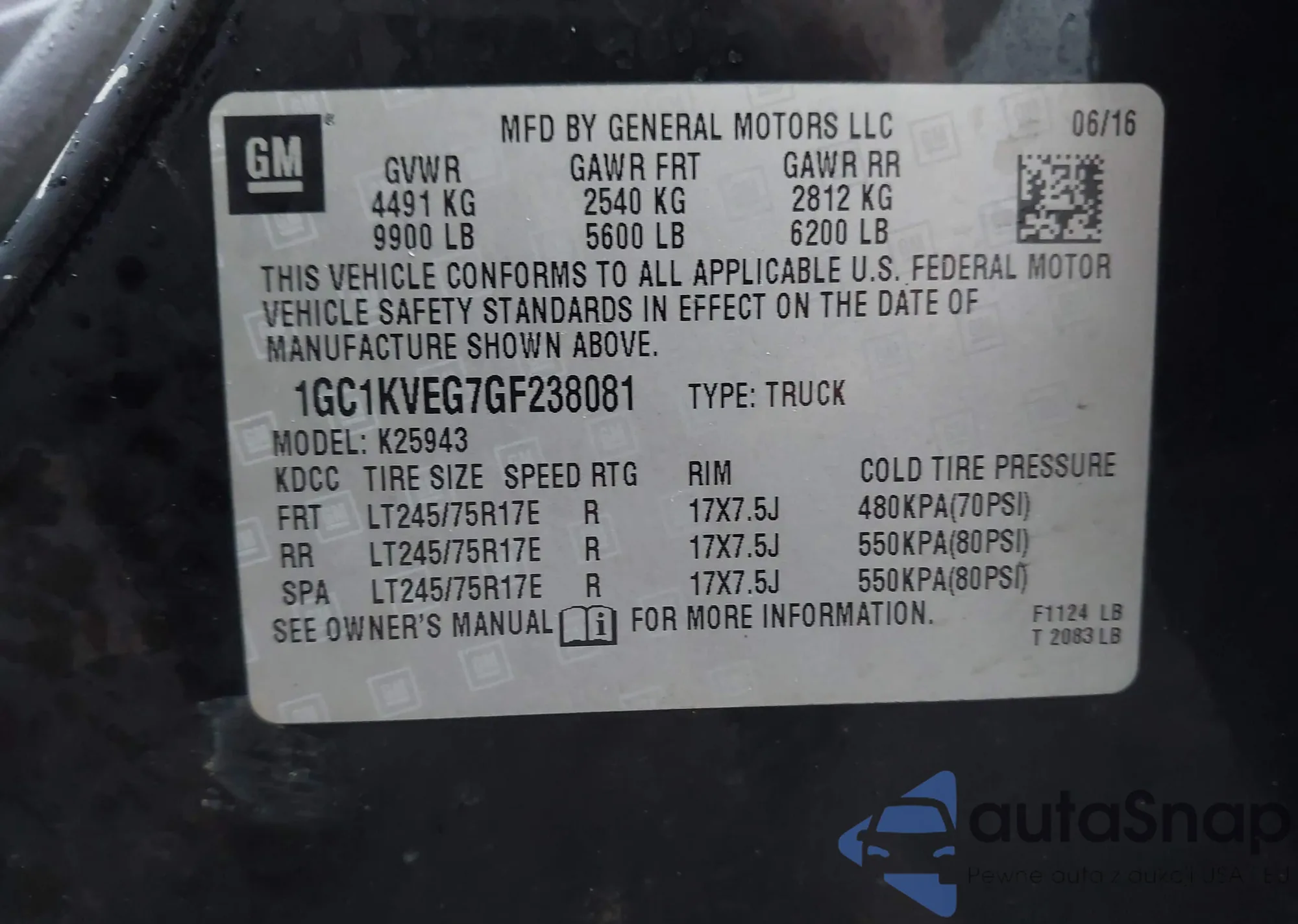 VIN: 1GC1KVEG7GF238081