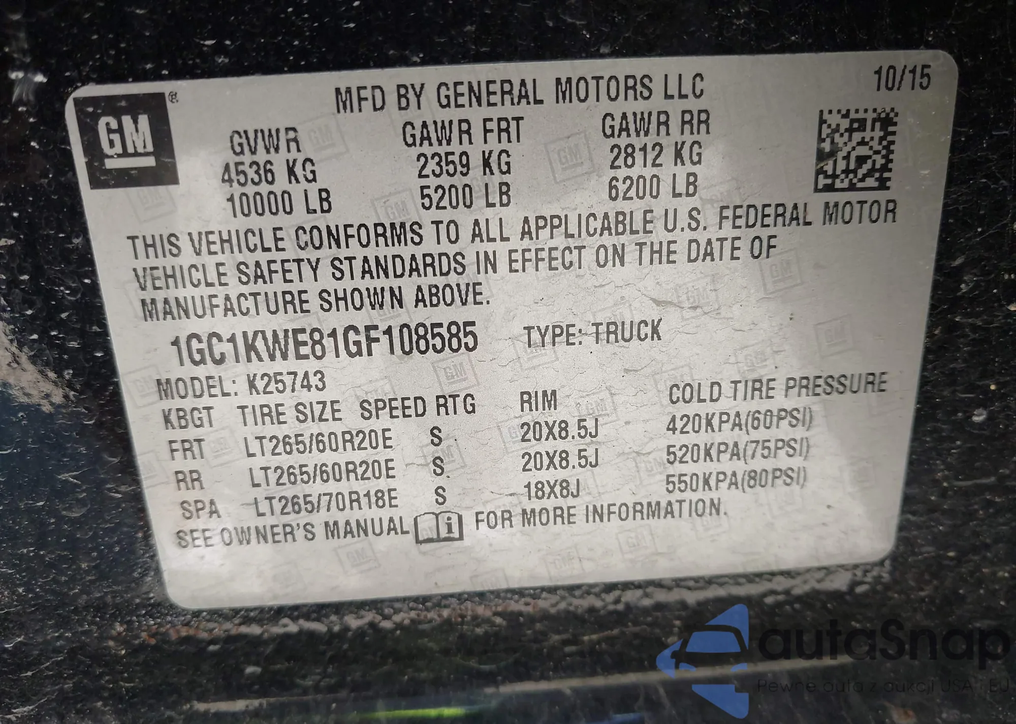 VIN: 1GC1KWE81GF108585