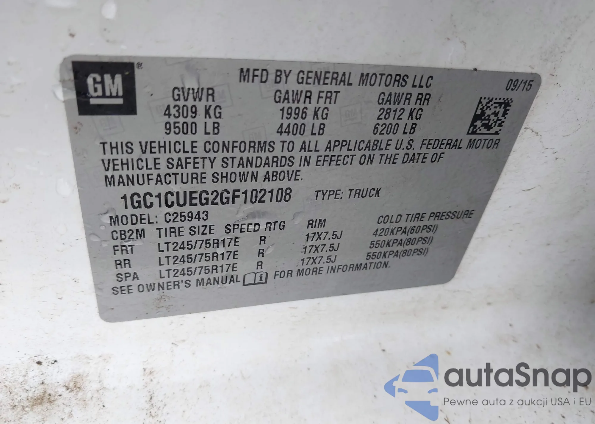 VIN: 1GC1CUEG2GF102108