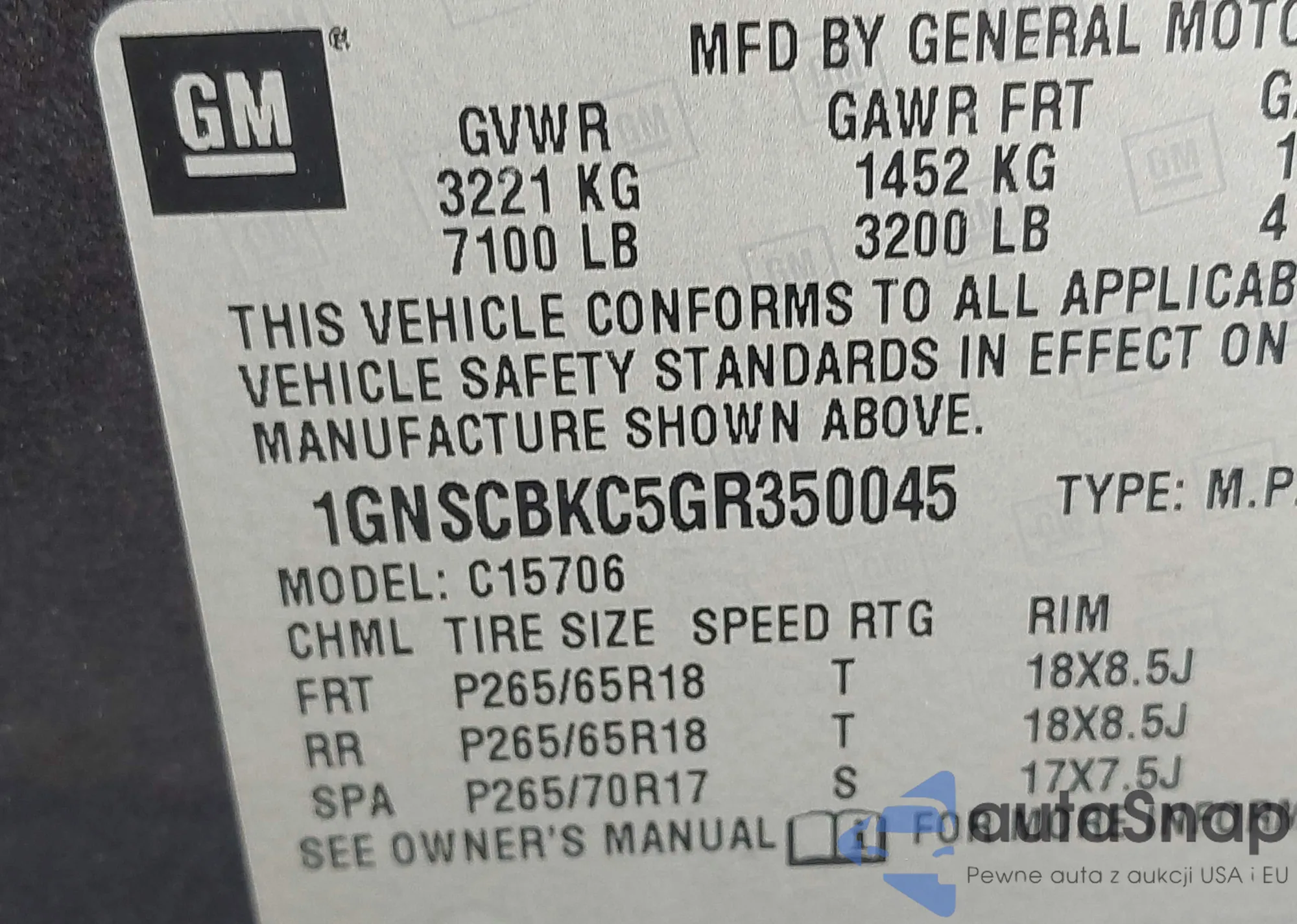 VIN: 1GNSCBKC5GR350045