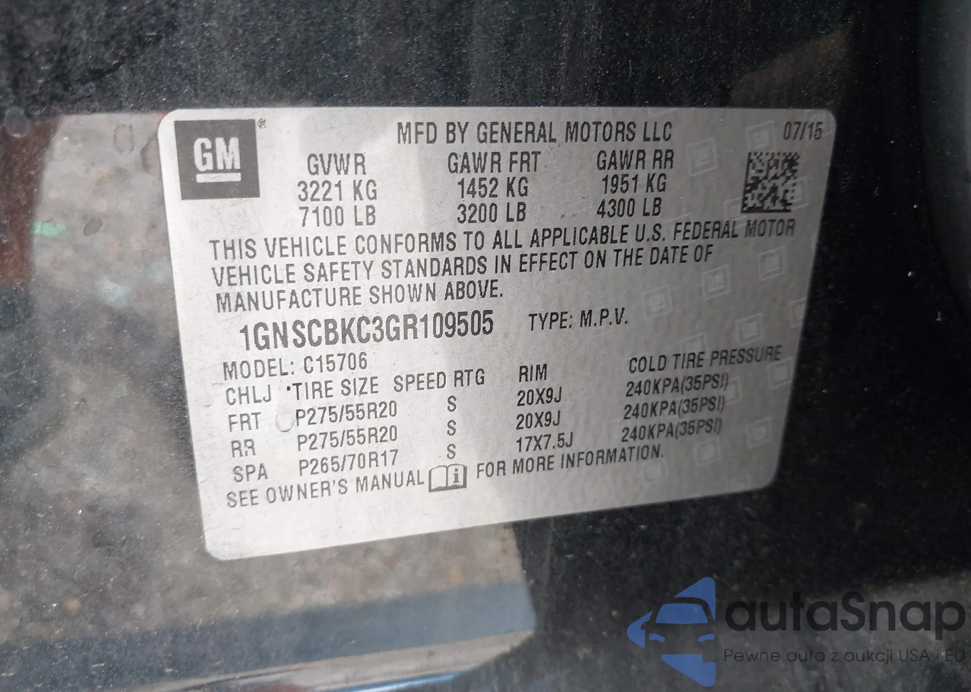 VIN: 1GNSCBKC3GR109505
