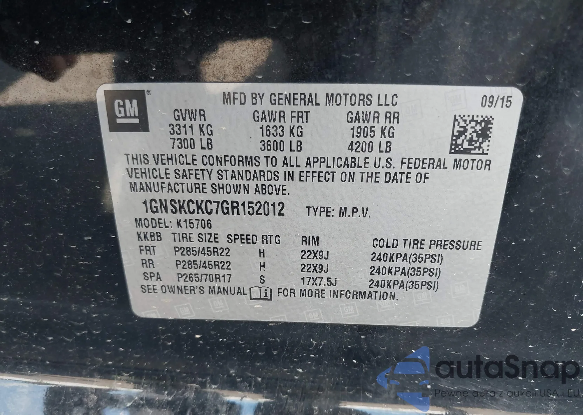 VIN: 1GNSKCKC7GR152012