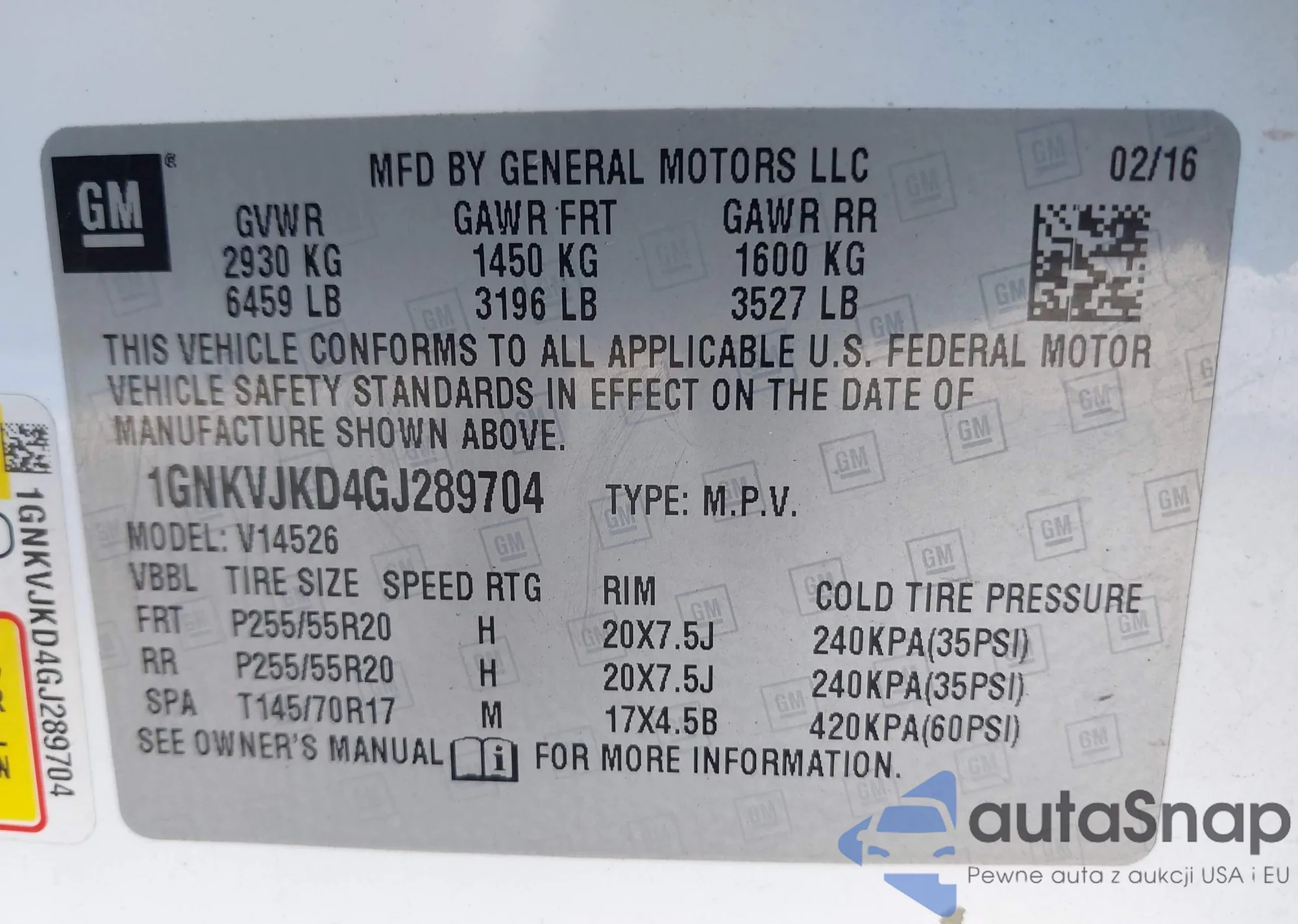 VIN: 1GNKVJKD4GJ289704