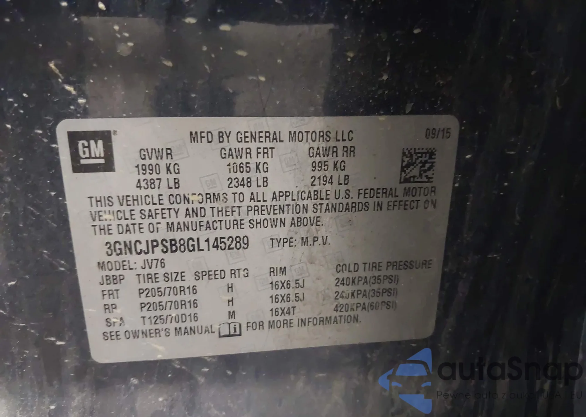 VIN: 3GNCJPSB8GL145289