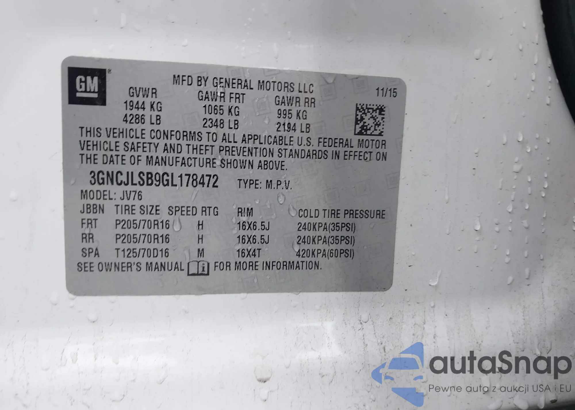 VIN: 3GNCJLSB9GL178472