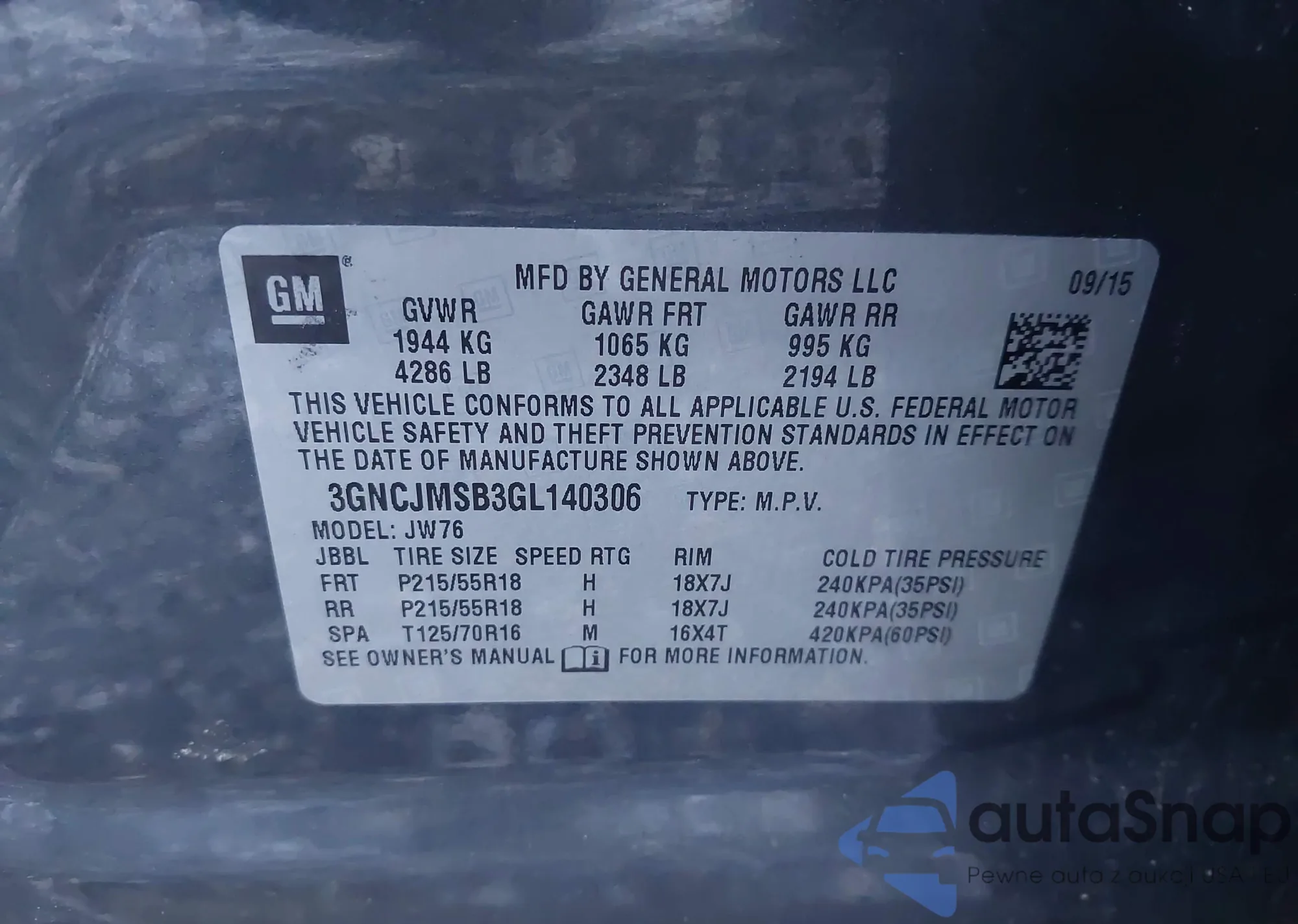 VIN: 3GNCJMSB3GL140306