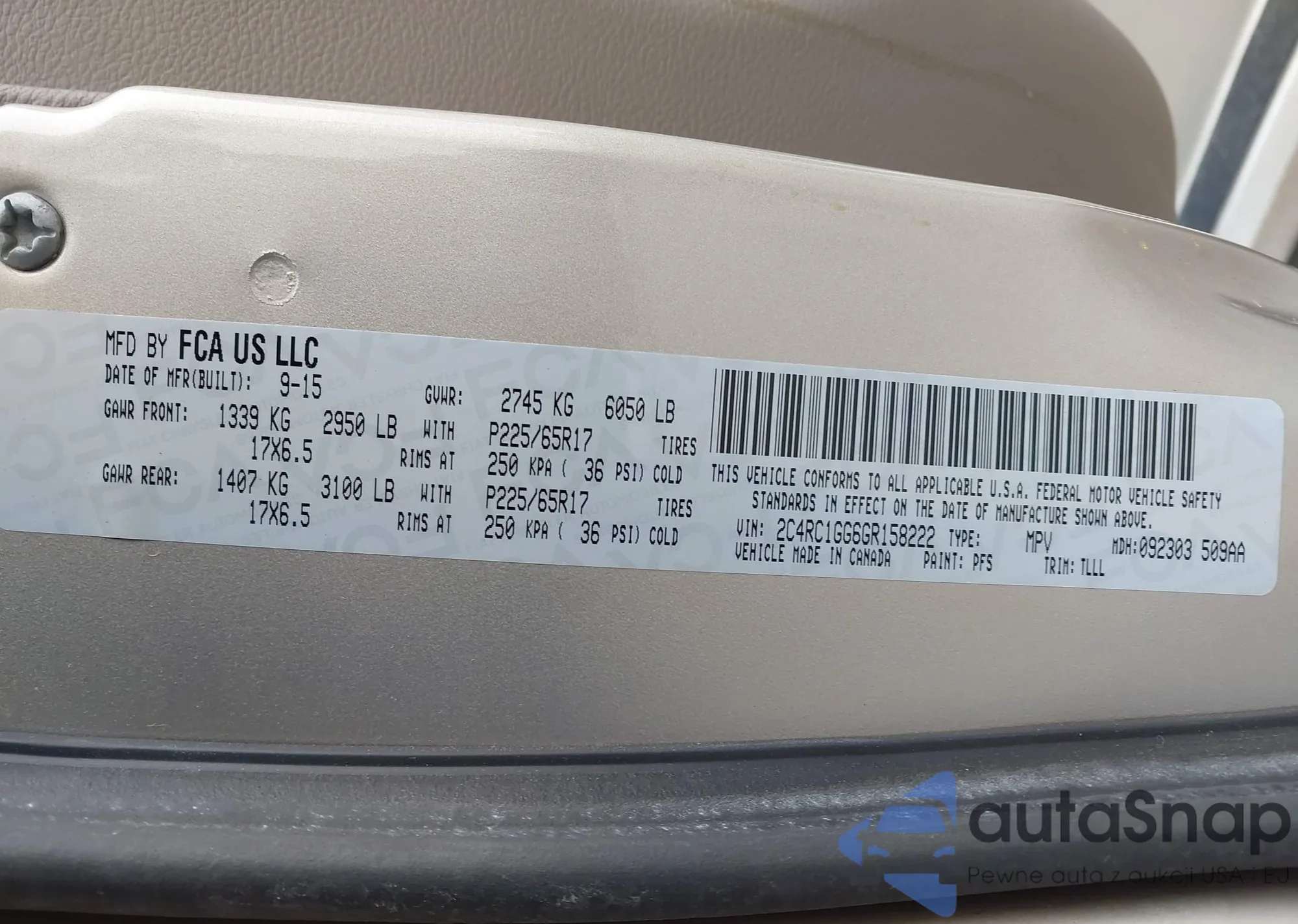 VIN: 2C4RC1GG6GR158222