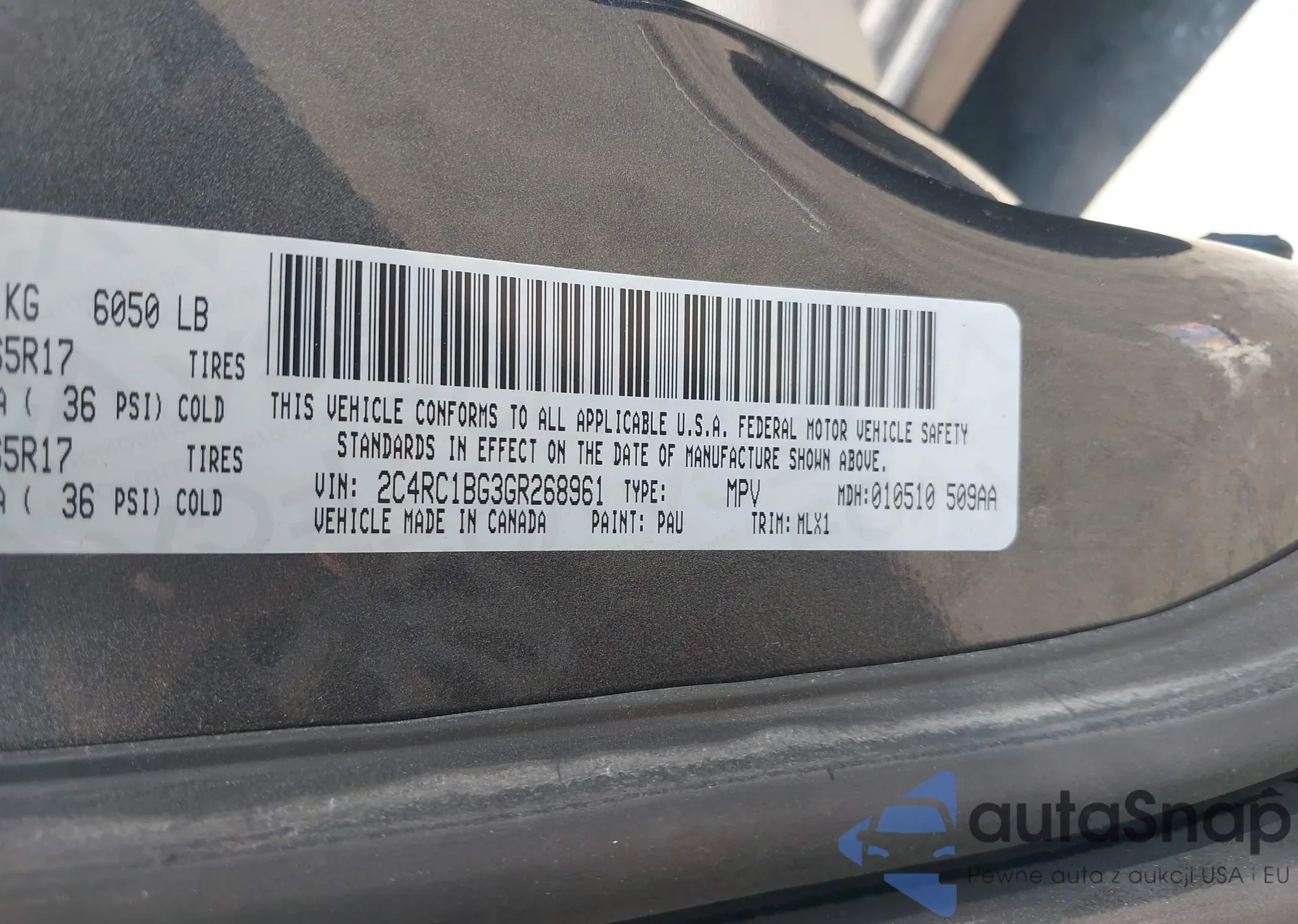 • VIN: 2C4RC1BG3GR268961