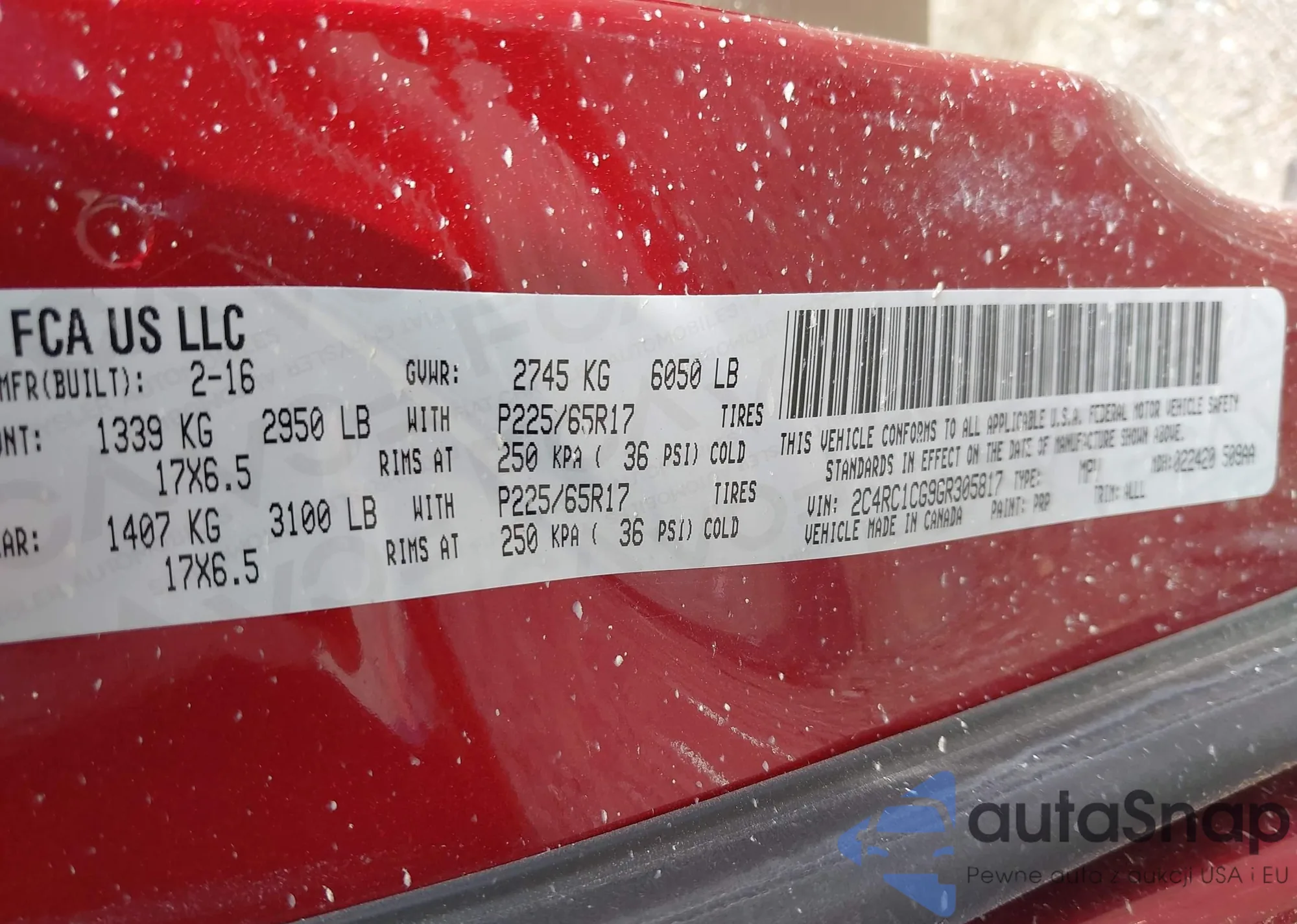 • VIN: 2C4RC1CG9GR305817
