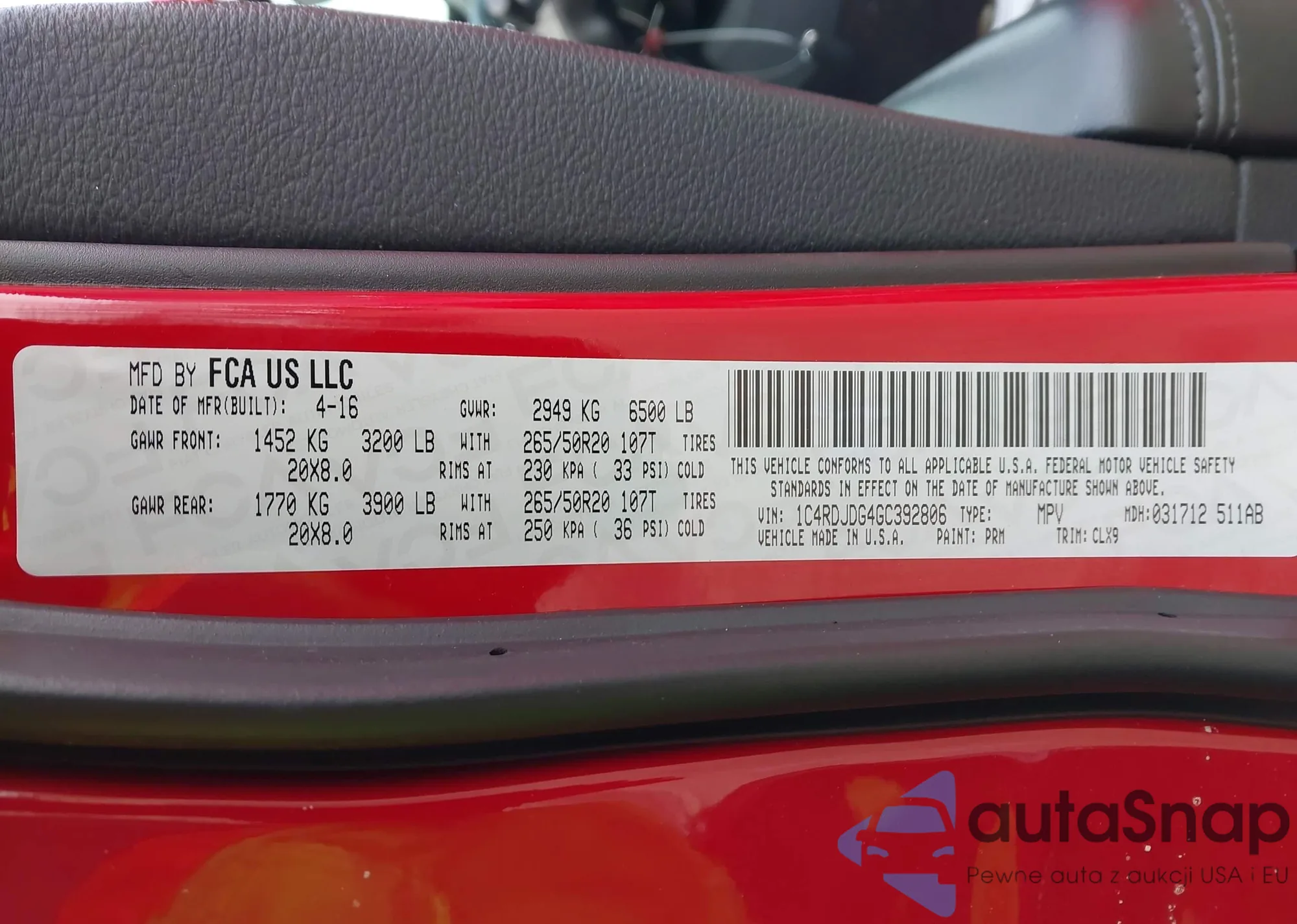 Автомобиль Dodge Durango 2016 (VIN 1C4RDJDG4GC392806) ранее не участвовал в торгах. Документы чистые, пробег соответствует или ниже среднего по рынку. Продаётся страховой компанией — рекомендуем покупку. Доставка в порт займет около 6–8 недель.