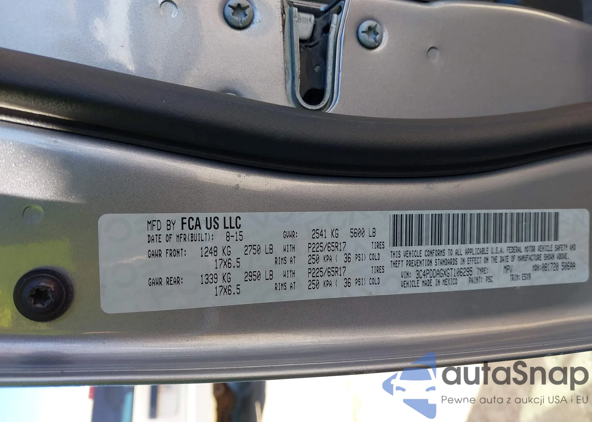 VIN: 3C4PDDAGXGT106295