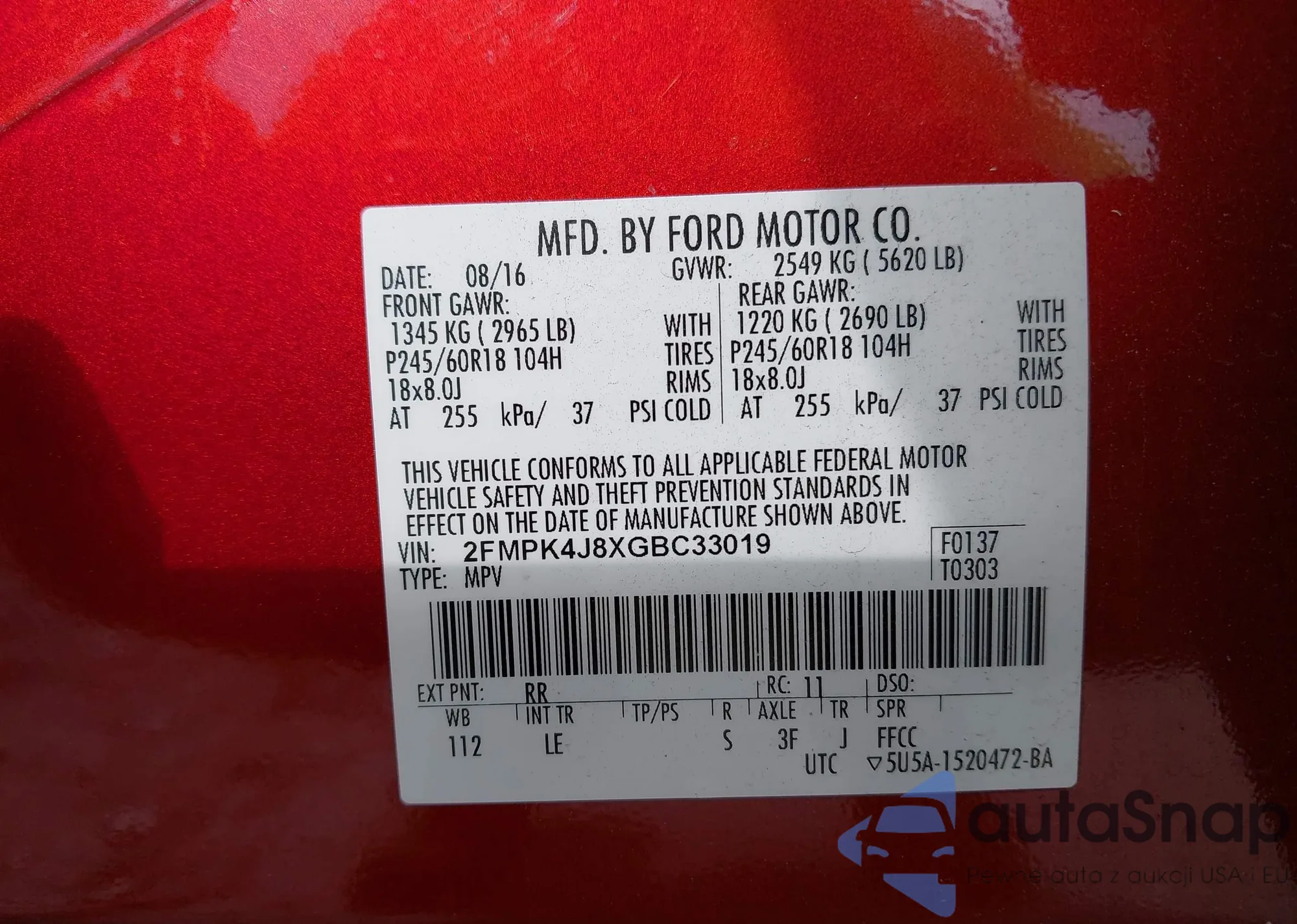 VIN: 2FMPK4J8XGBC33019