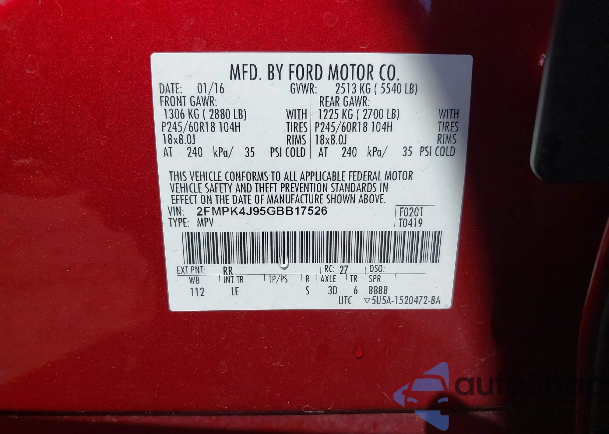 VIN: 2FMPK4J95GBB17526