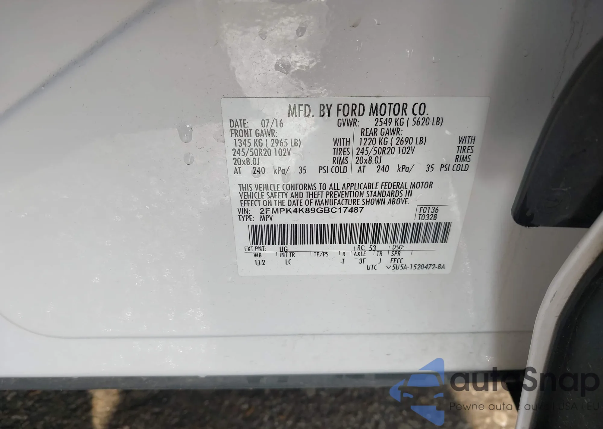 Автомобиль Ford Edge 2016 (VIN 2FMPK4K89GBC17487) ранее не участвовал в торгах. Документы чистые, пробег соответствует или ниже среднего по рынку. Продаётся страховой компанией — рекомендуем покупку. Доставка в порт займет около 6–8 недель.