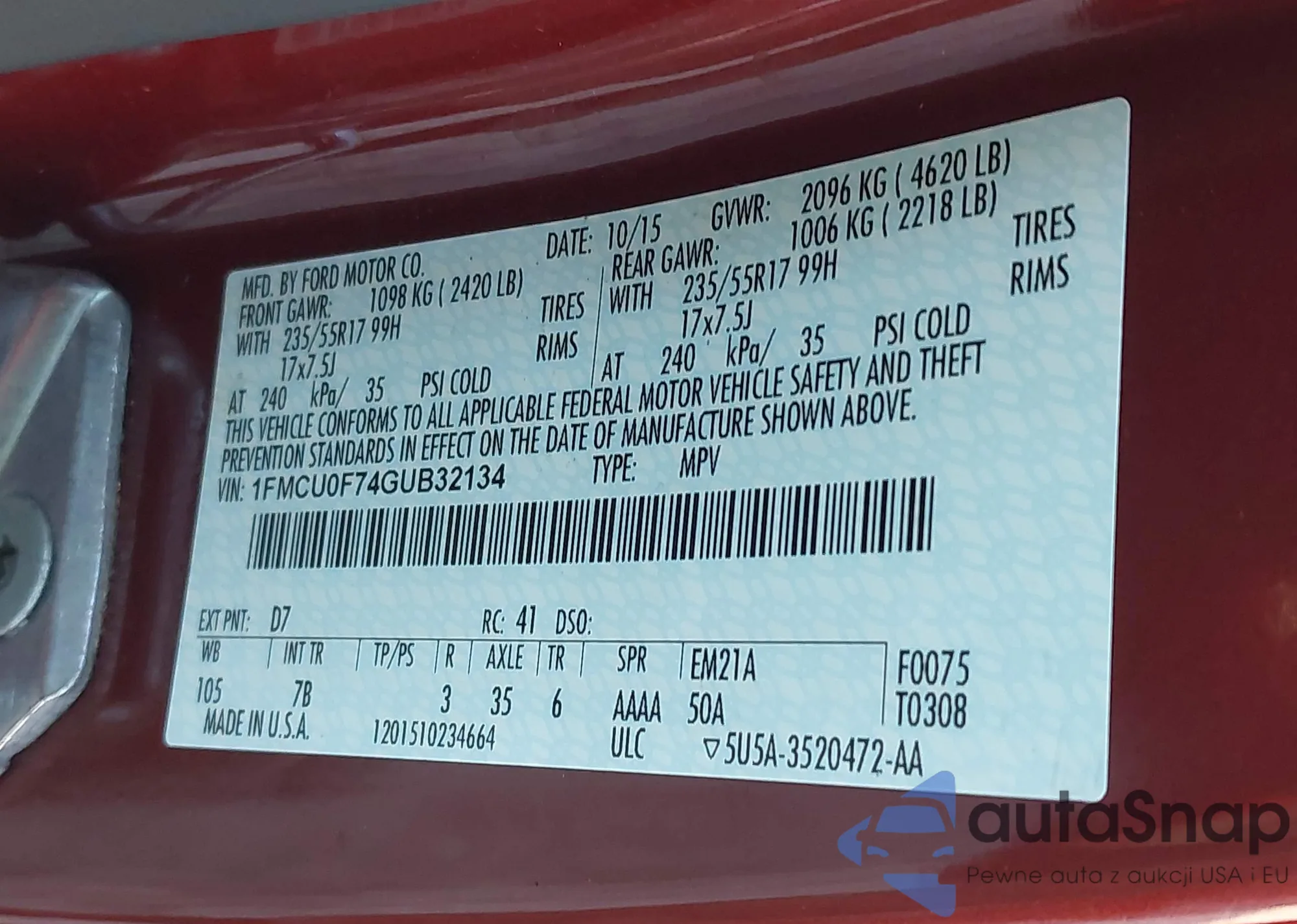 VIN: 1FMCU0F74GUB32134